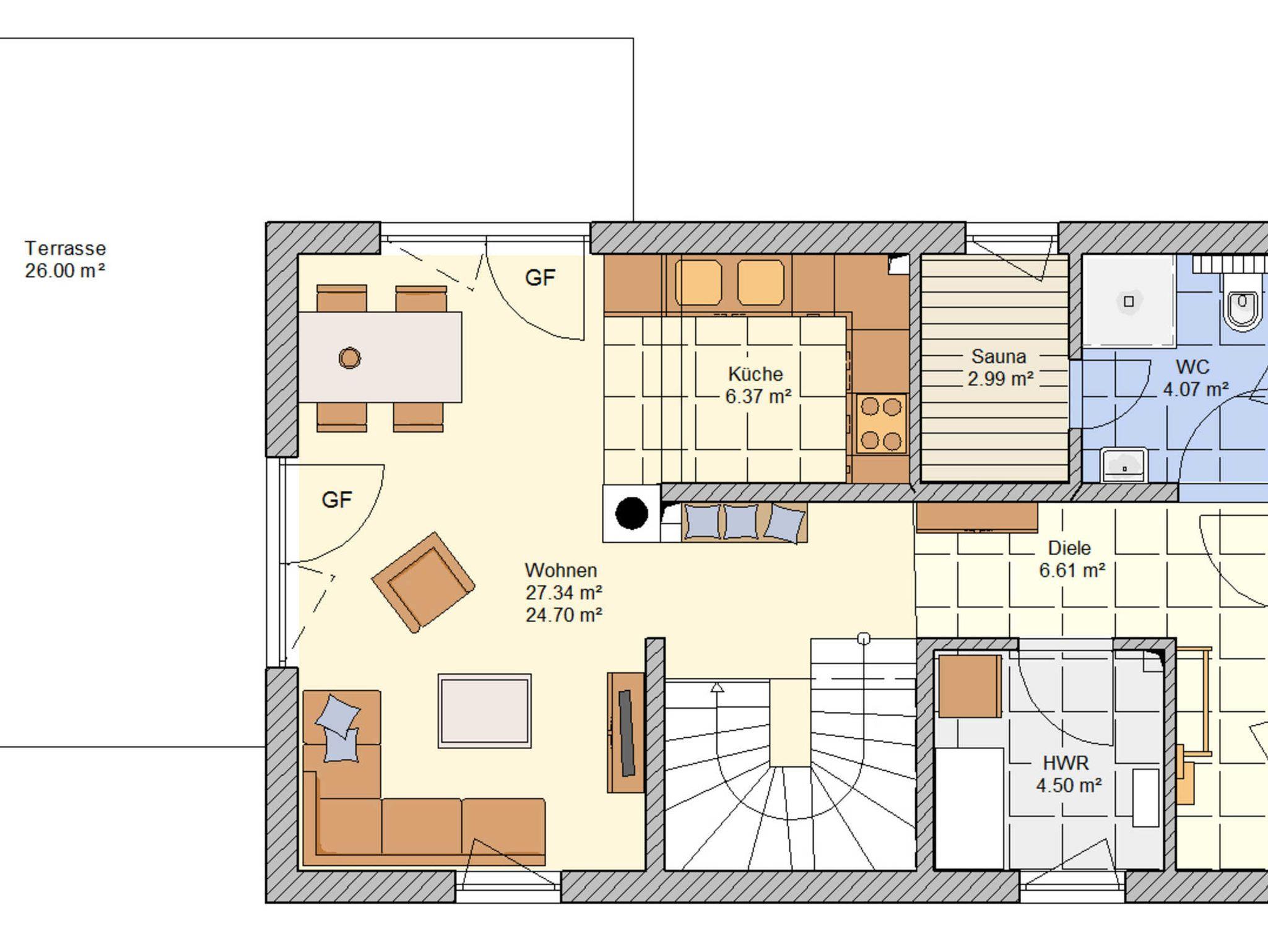richtige. Die Treppe ins Obergeschoss finde ich wirklich schick und praktisch