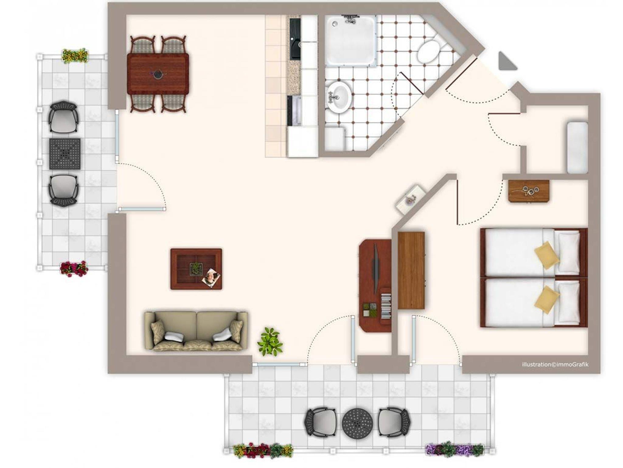 1 Schlafzimmer mit Doppelbett