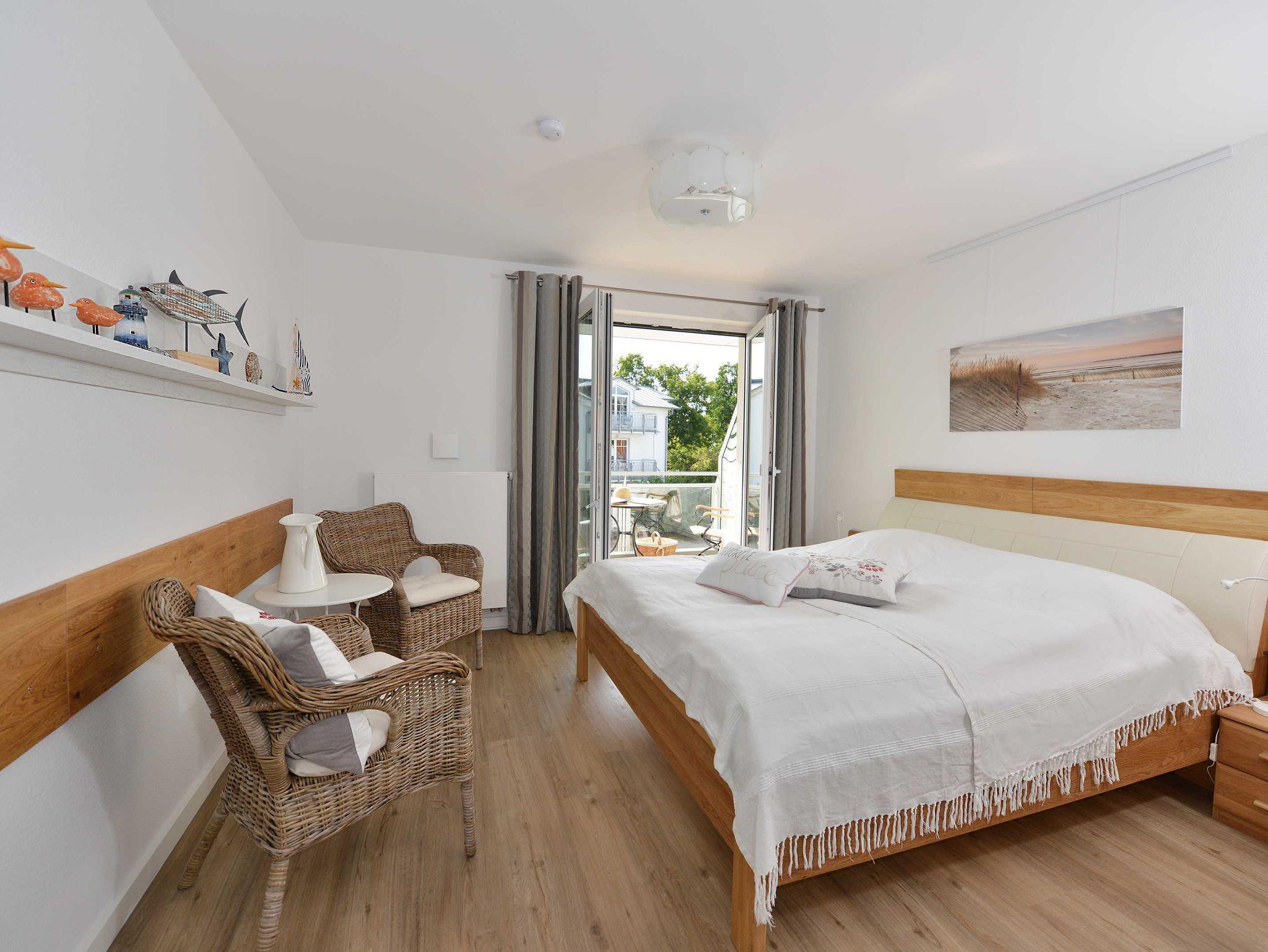 Die Ferienwohung Strandhuhn verfügt über ein Schlafzimmer mit einem Doppelbett.