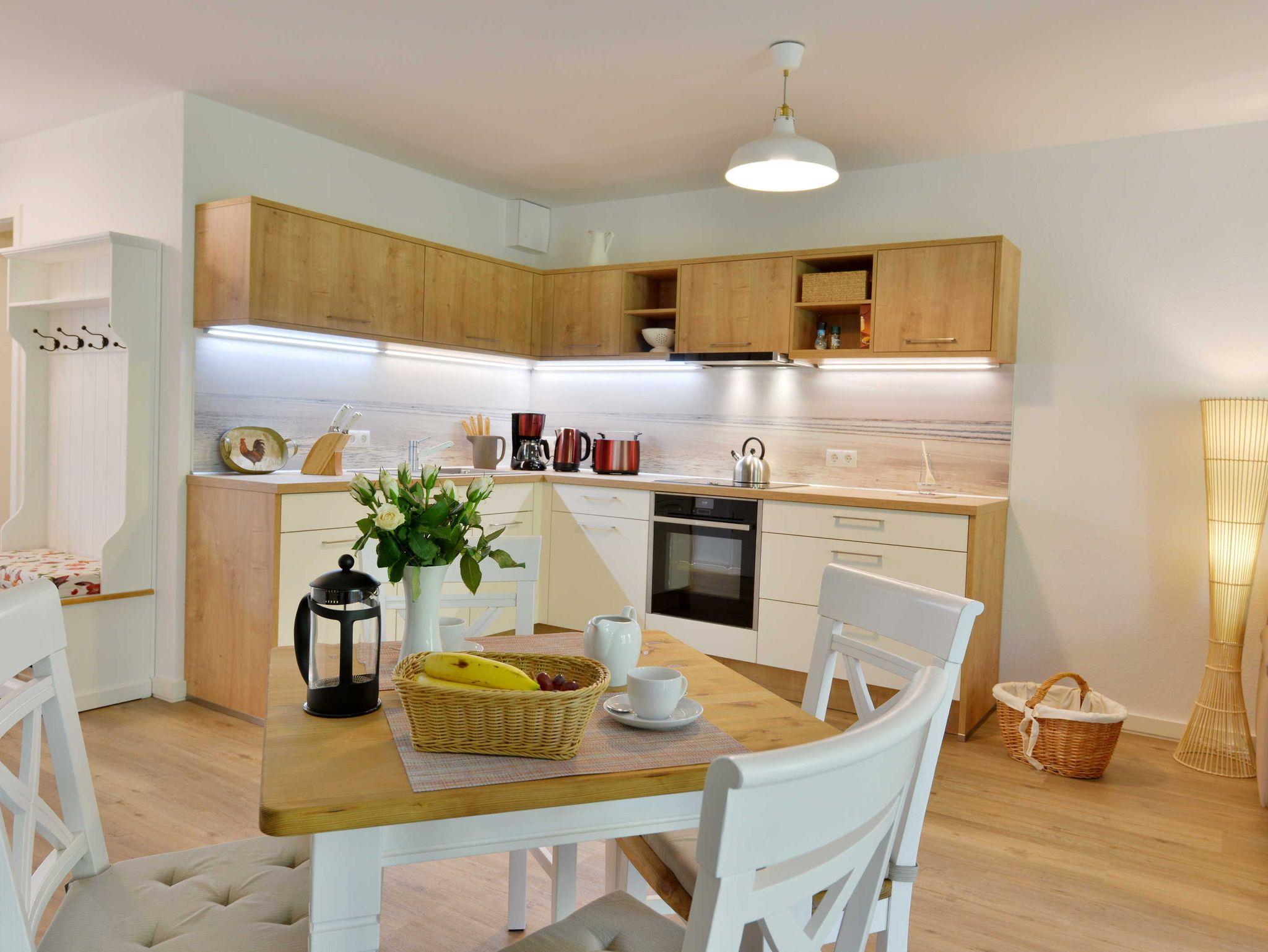 Küche mit Backofen, Spülmaschine, Mikrowelle, Gefrierbox