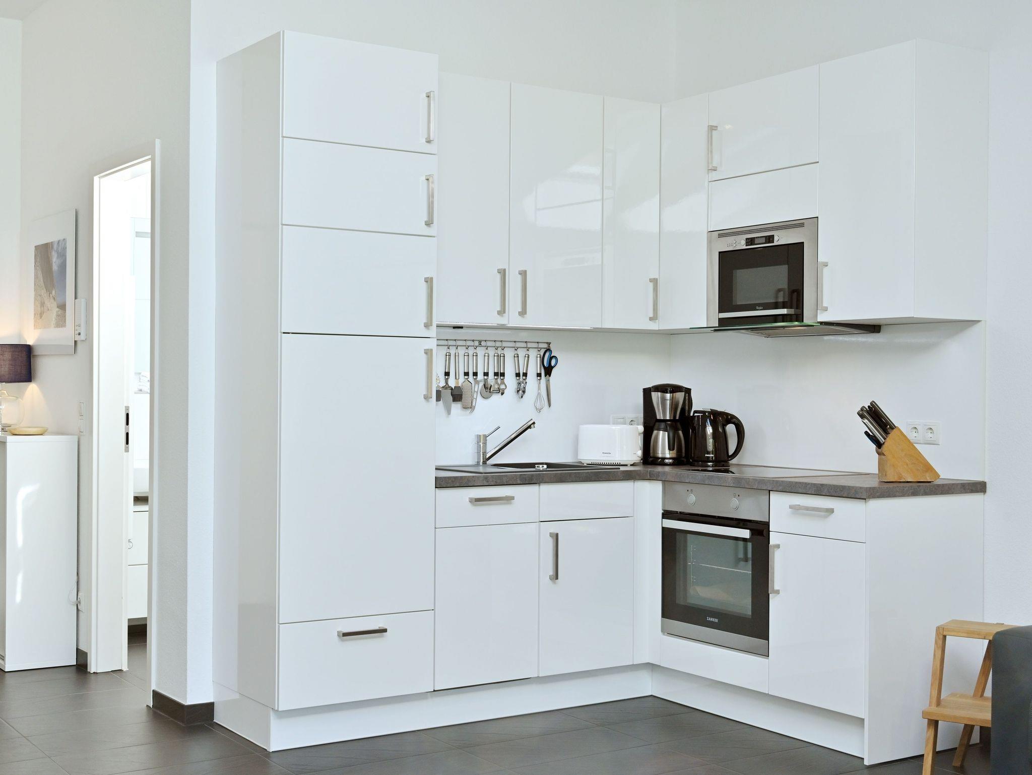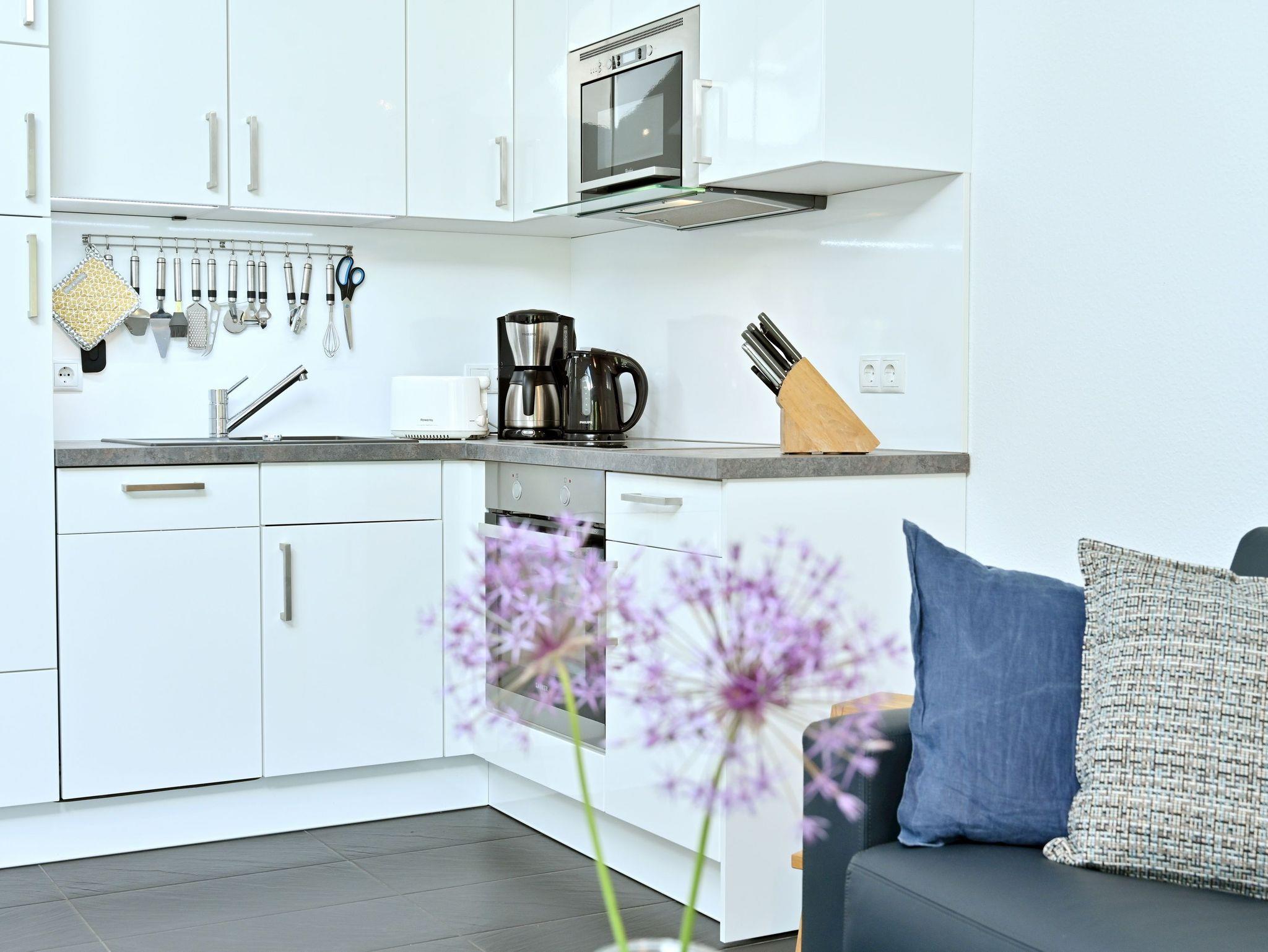 Küche mit Backofen, Mikrowelle, Spülmaschine, Kaffeefiltermaschine