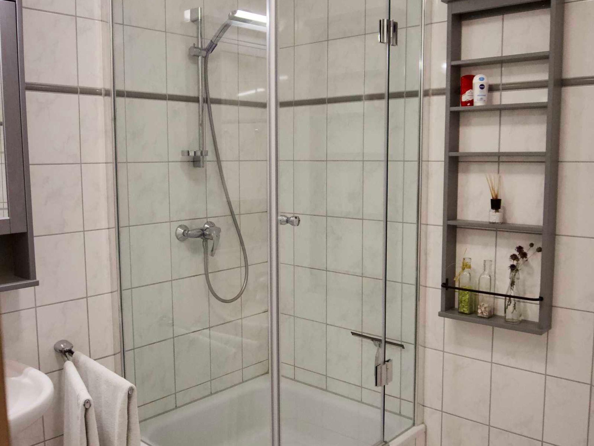 Das Bad verfügt über eine Dusche.