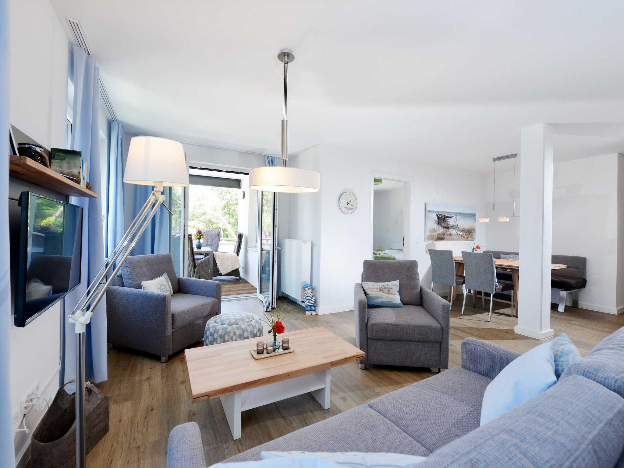 Die Ferienwohnung Sonnensegler befindet sich in der 1. Etage des Strandhauses Juliusruh am wunderschönen Ostseestrand der Schaabe. Sie besitzt einen großzügigen, geschützt liegenden Balkon mit seitlichem Meerblick.