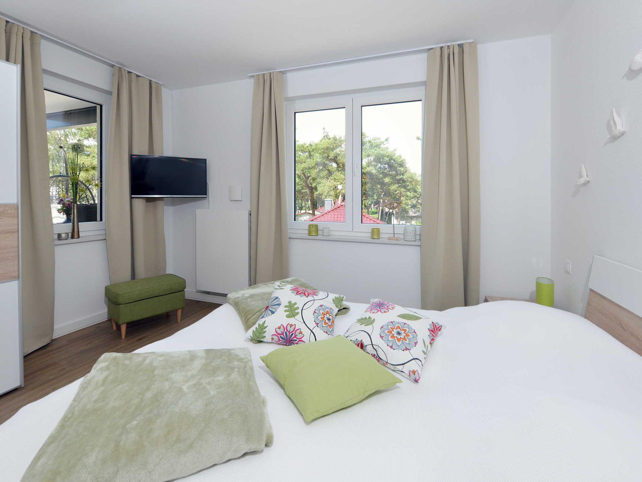 Ihr Urlaubsdomizil besitzt ein Schlafzimmer mit Doppelbett, im Wohnbereich finden Sie eine gemütliche Couch mit Schlaffunktion und einen Flatscreen-TV, einen Essbereich sowie die mit allen Annehmlichkeiten ausgestattete Küche.
