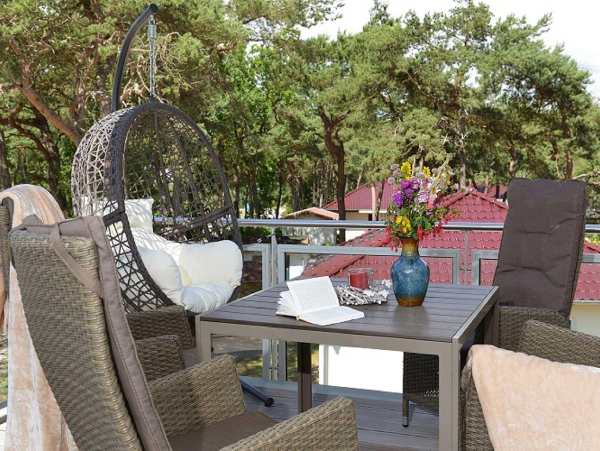 Balkon mit Gartenmöbeln und Schaukelsitz