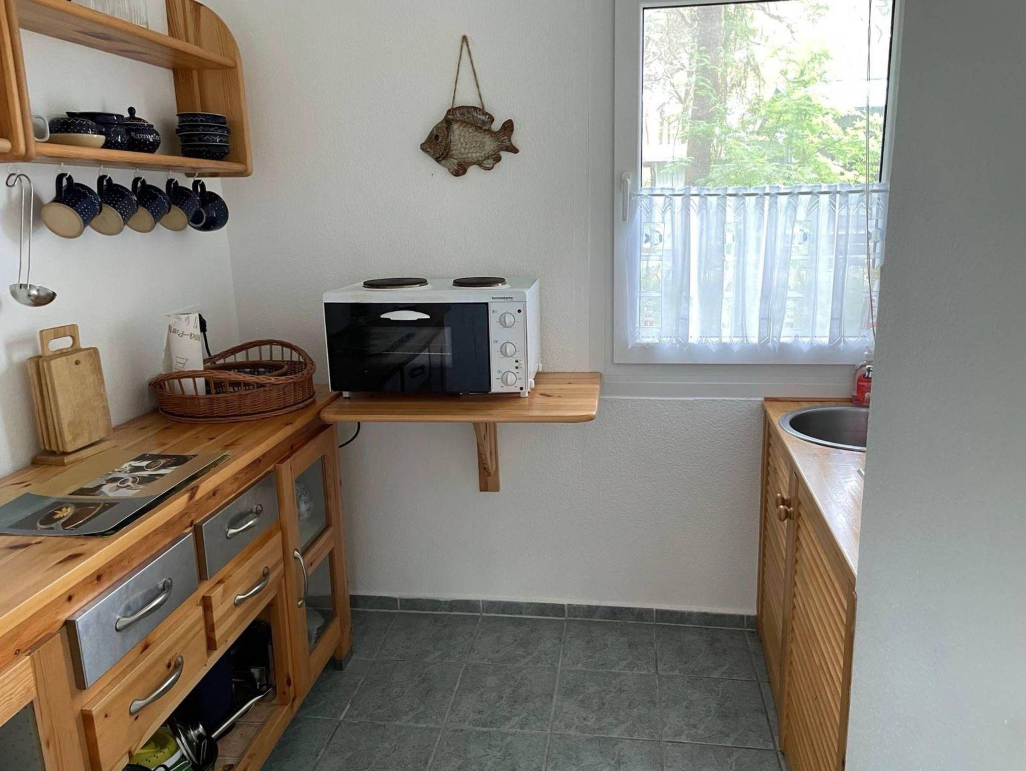 Die Küchenzeile lässt keine Wünsche offen: Ein Kühlschrank, eine Mikrowelle, ein Cerankochfeld mit Backofen, Wasserkocher und Kaffeemaschine stehen bereit ? ideal, um Ihre Mahlzeiten bequem selbst zuzubereiten.