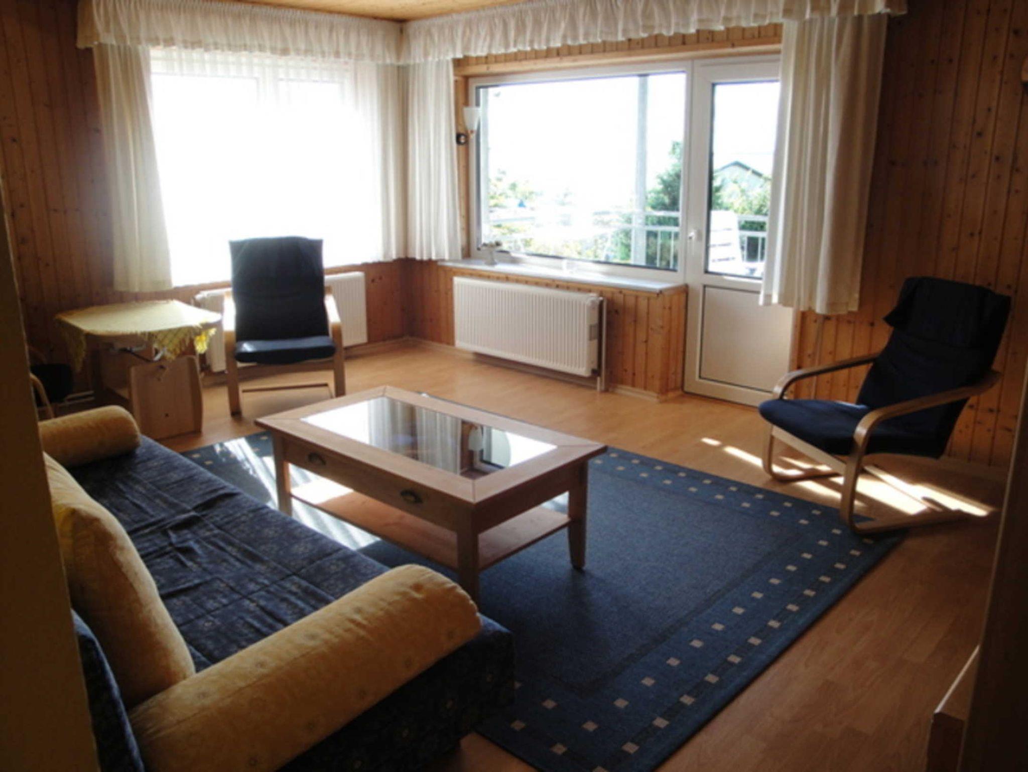 Die Ferienwohnung besteht aus dem Erdgeschoß einer Doppelhaushälfte. Auf dem Balkon aus können Sie Ihr Frühstück bei Sonnenschein mit Aussicht auf den Breeger Bodden genießen.