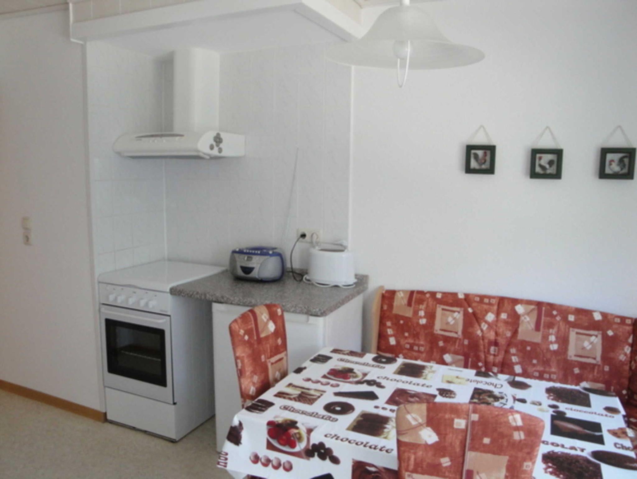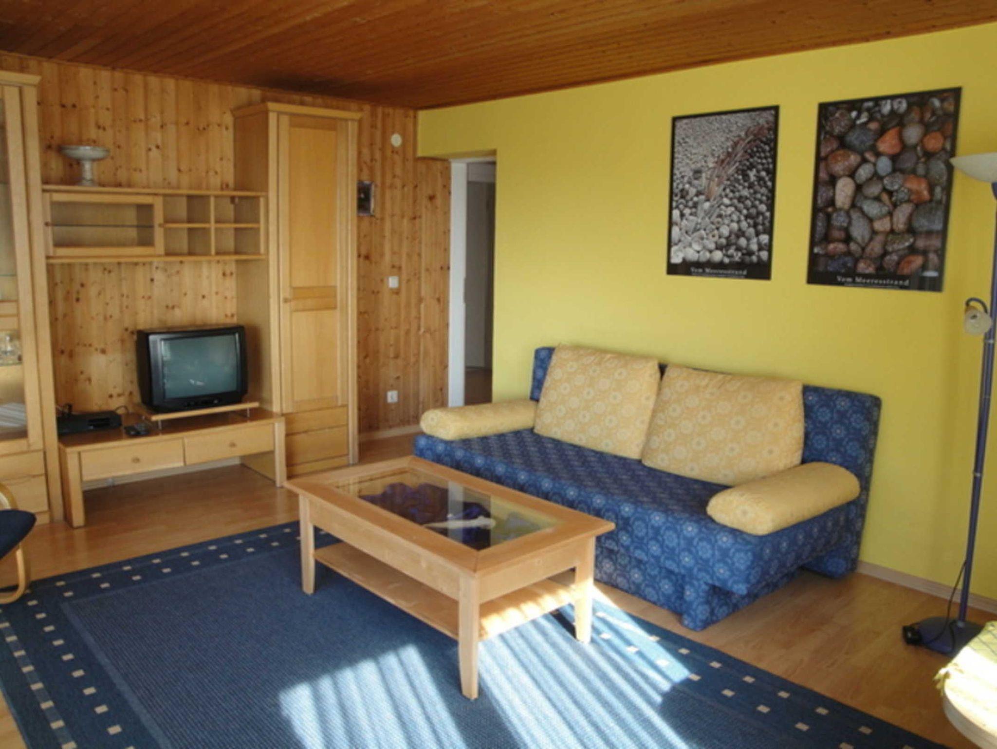 Das Ferienhaus enthält ein großes Wohnzimmer, zwei Schlafräume, Bad mit Dusche und WC und eine neue Küche mit Essecke. Außerdem gibt es einen großen Balkon und einen Fahrradkeller. In der Ferienwohnung können 4-5 Personen ihren Urlaub verbringen. Für 2 Kinder gibt es ein Doppelstockbett, die Erwachsenen haben ein Doppelbett oder können die Schlafcouch im Wohnzimmer nutzen. Davor liegt ein Wassergrundstück mit einer sehr grossen Wiese, welche direkt an den Breeger Bodden grenzt. Von der Wasserkante aus können Sie u.a. angeln, Boot fahren oder baden.