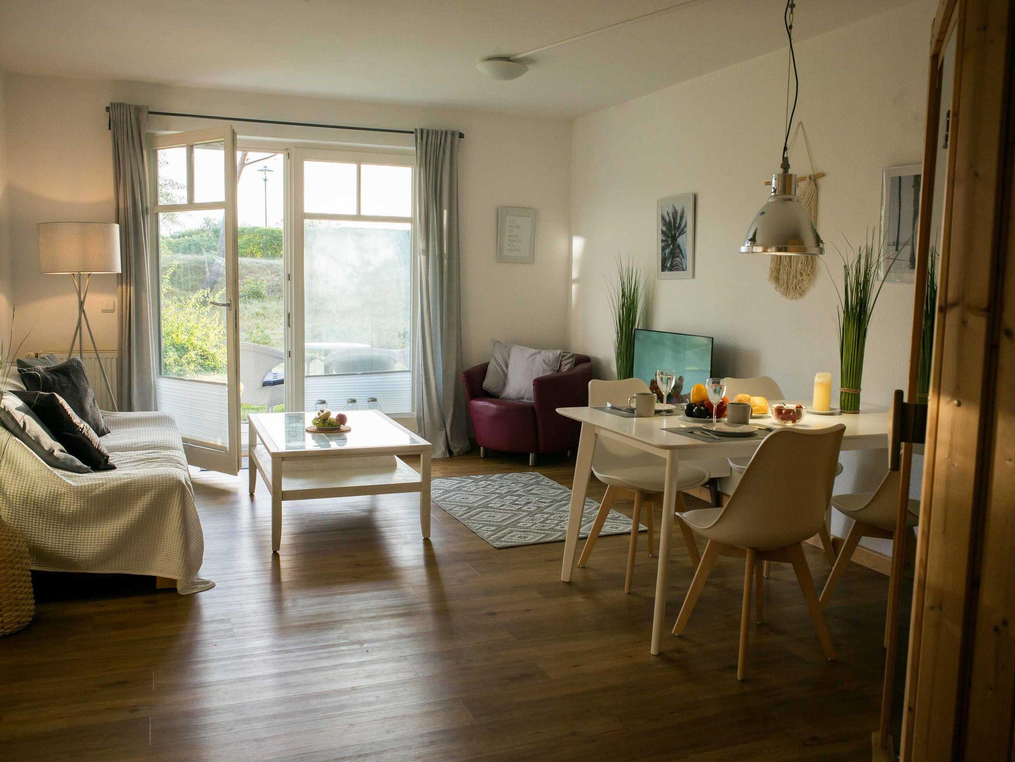 Die Ferienwohnung Arkona Beach liegt direkt hinter der Düne des Ostseestrandes von Juliusruh. Ein Strandaufgang ist unmittelbar an der Unterkunft. Die Wohnung besitzt ein Schlafzimmer mit Doppelbett. Der Wohnbereich ist mit einer gemütlichen Sitzecke, einem Essbereich und einer Sauna ausgestattet. An den Wohnbereich grenzt die Terrasse mit Gartenmöbeln.