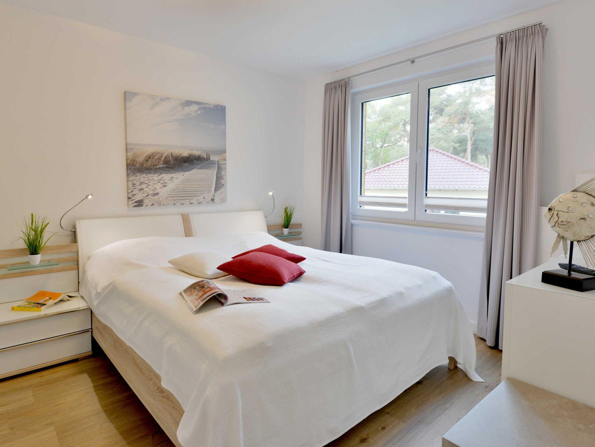 Das Schlafzimmer besitzt ein Doppelbett (180x 200cm), reichlich Stauraum für Ihre Urlaubsgarderobe und ein TV-Gerät.