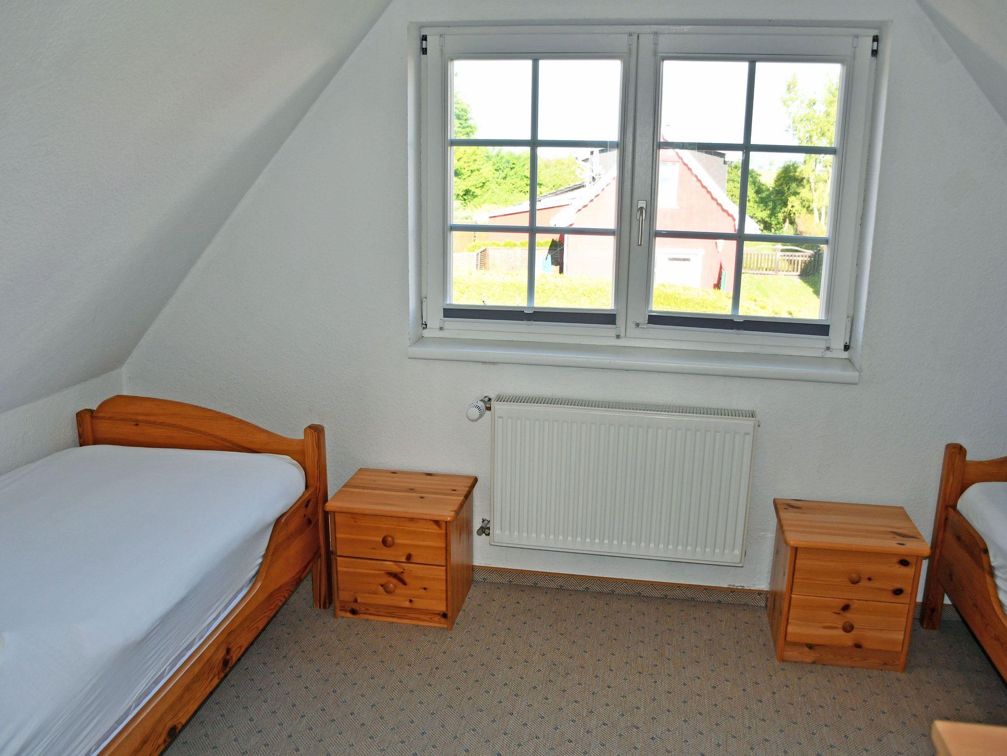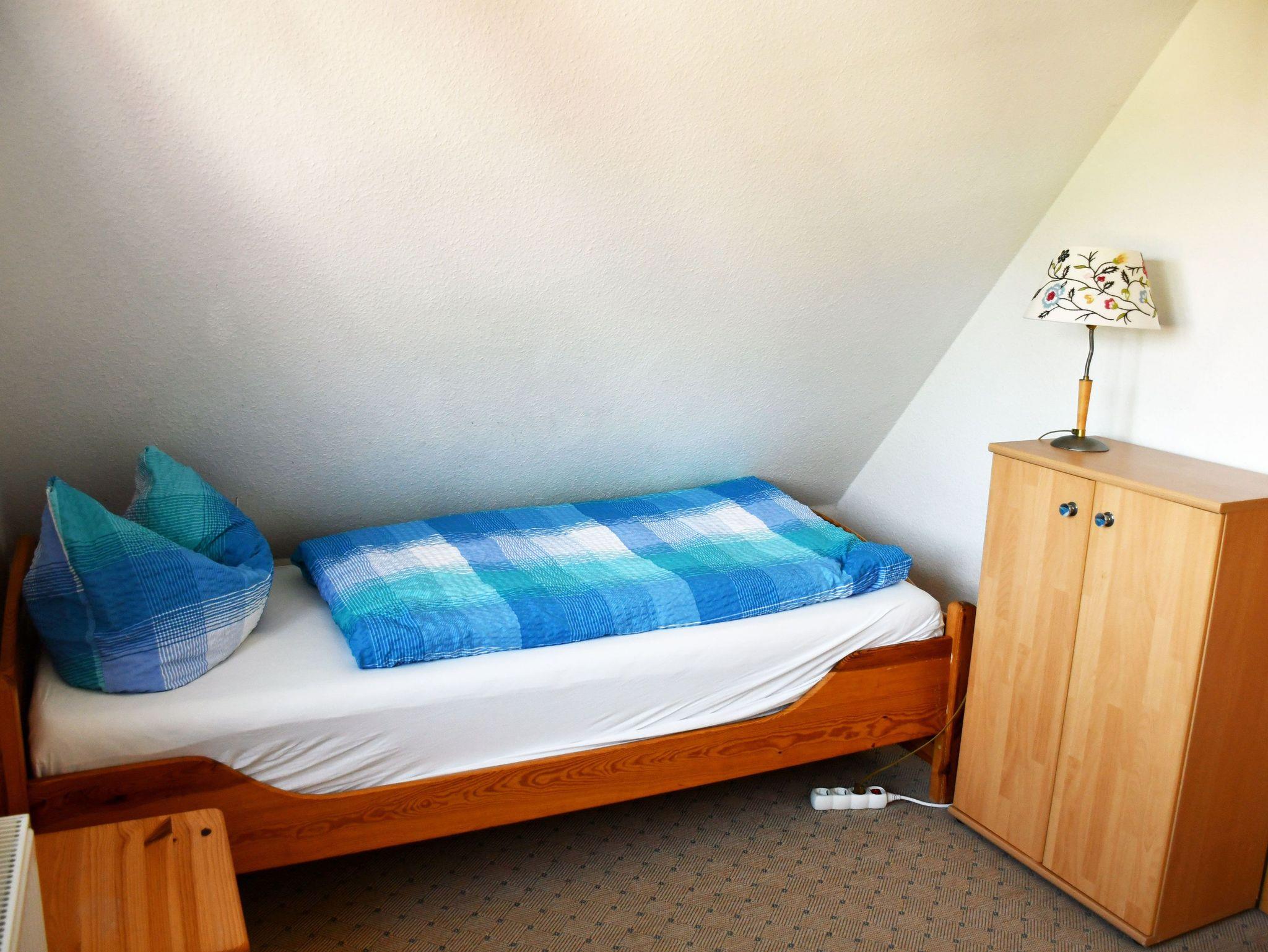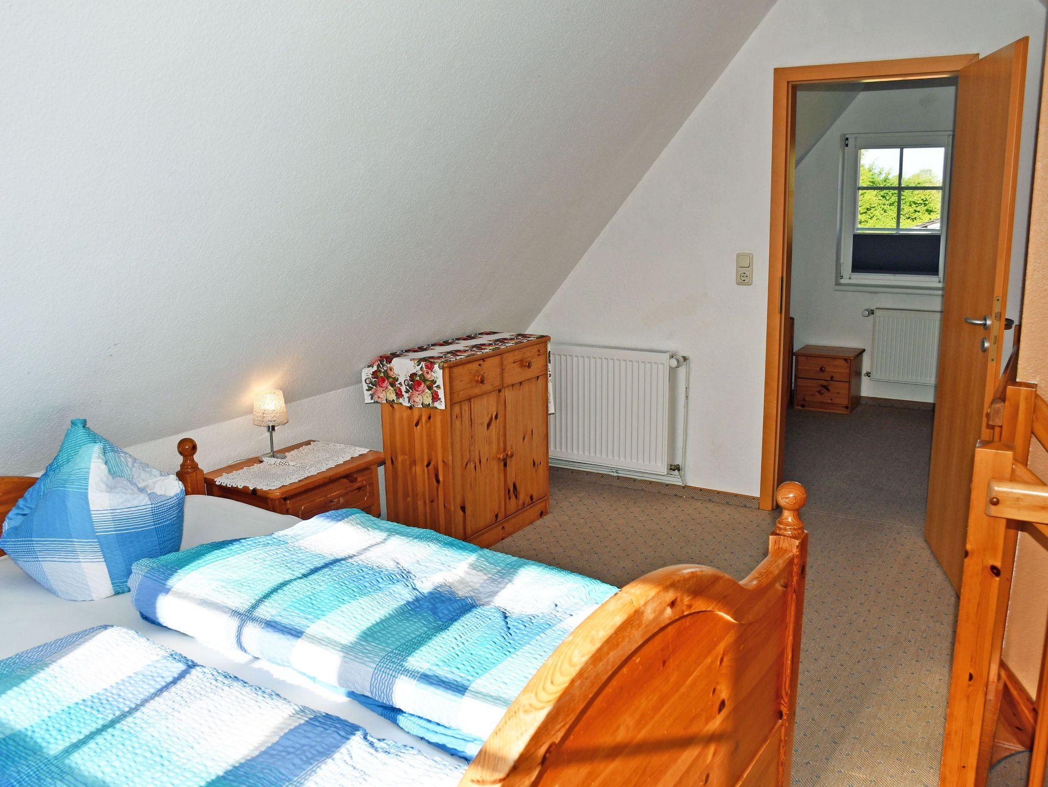 Im ersten Schlafzimmer im Obergeschoss (nicht durch eine Tür vom Wohnbereich getrennt!) befindet sich ein bequemes Doppelbett mit Leselampen und Nachtschränken. Im zweiten, durch eine Tür getrenntes Schlafzimmer stehen zwei Einzelbetten.
