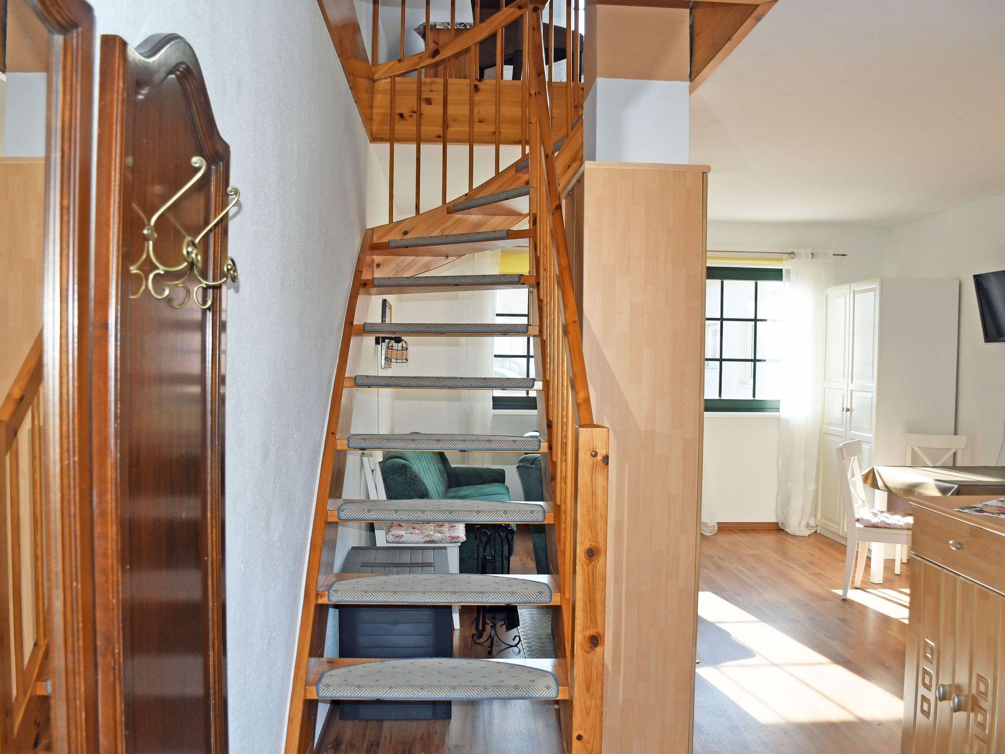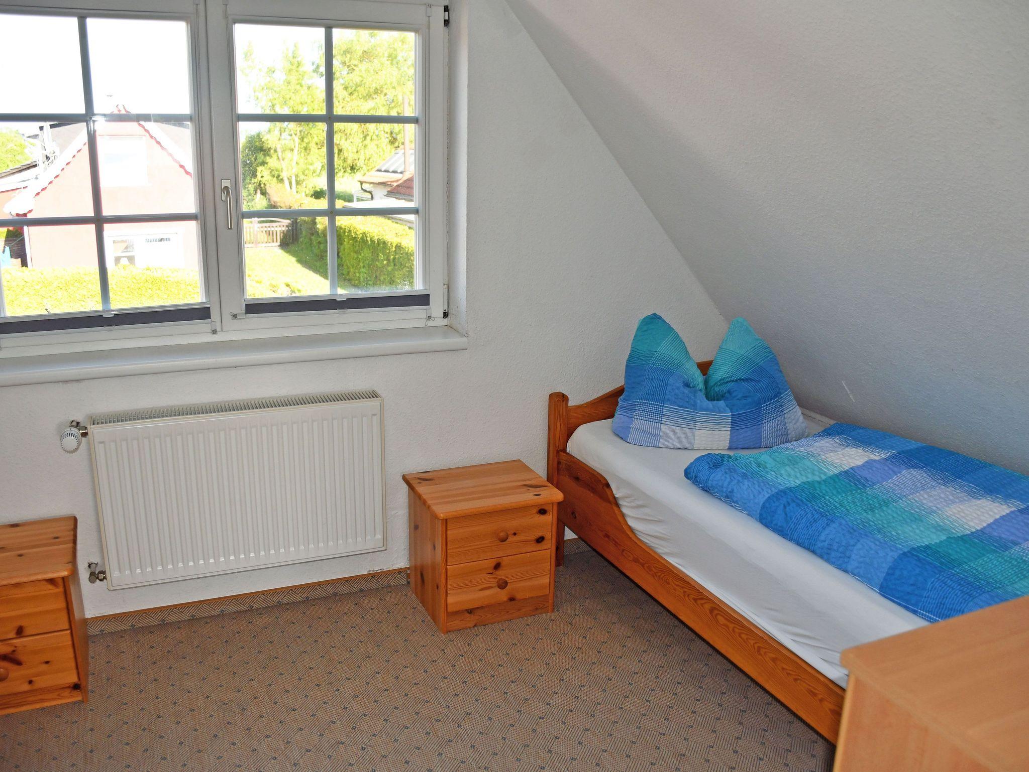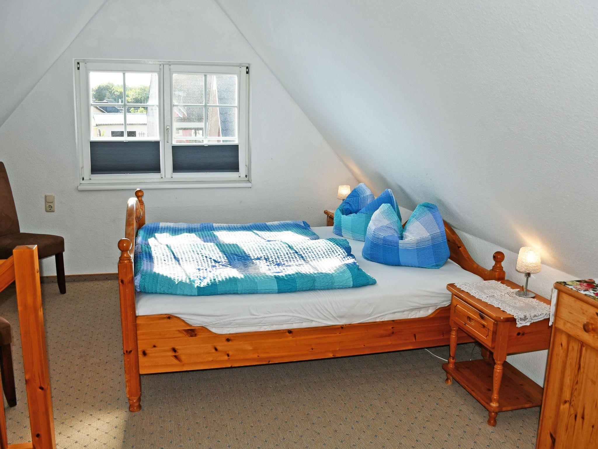 Im ersten Schlafzimmer im Obergeschoss (nicht durch eine Tür vom Wohnbereich getrennt!) befindet sich ein bequemes Doppelbett mit Leselampen und Nachtschränken. Im zweiten, durch eine Tür getrenntes Schlafzimmer stehen zwei Einzelbetten.