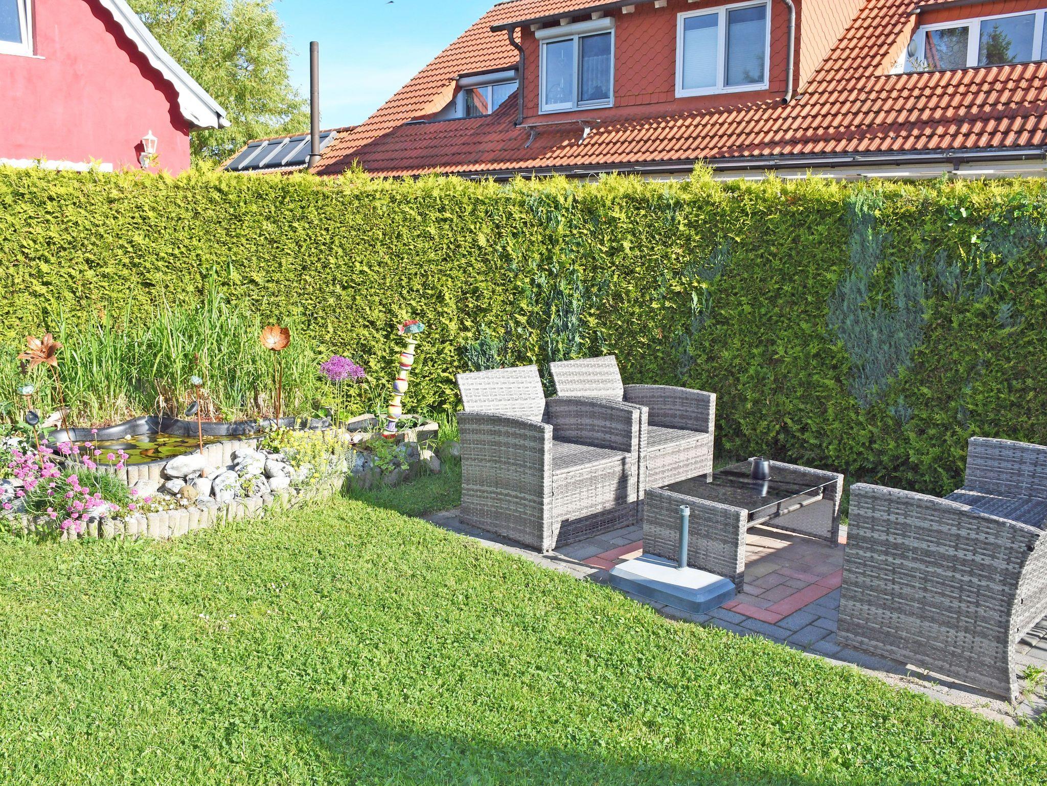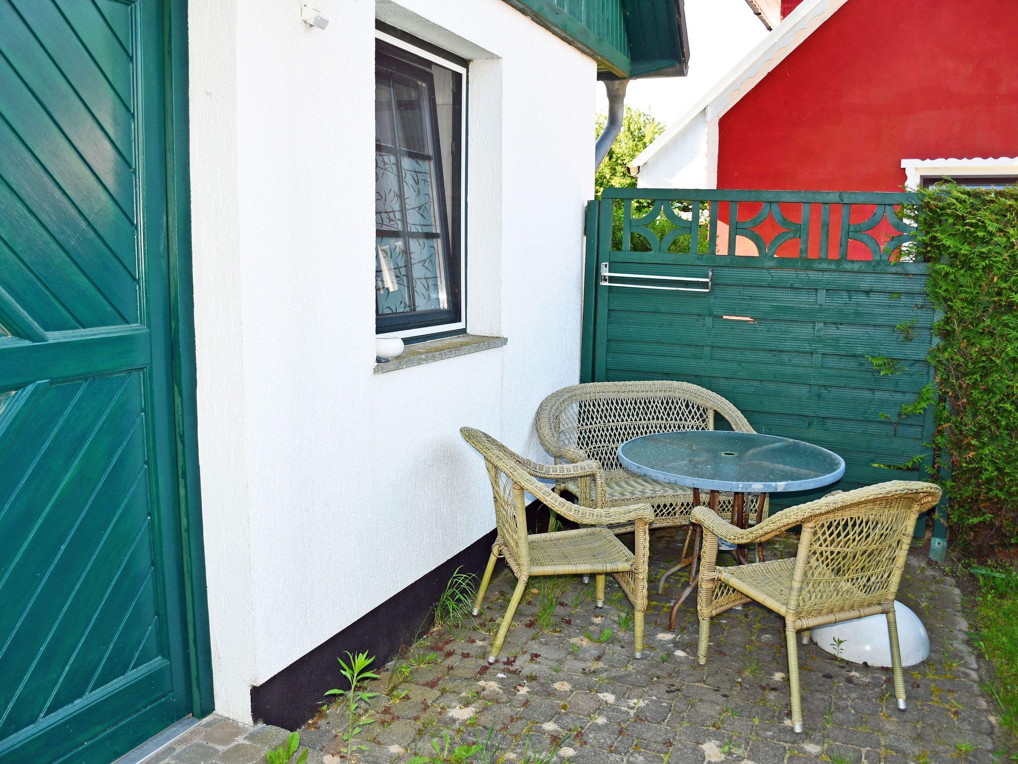 An dieses Ferienhaus ist eine Terrasse mit Gartenmöbeln angeschlossen.