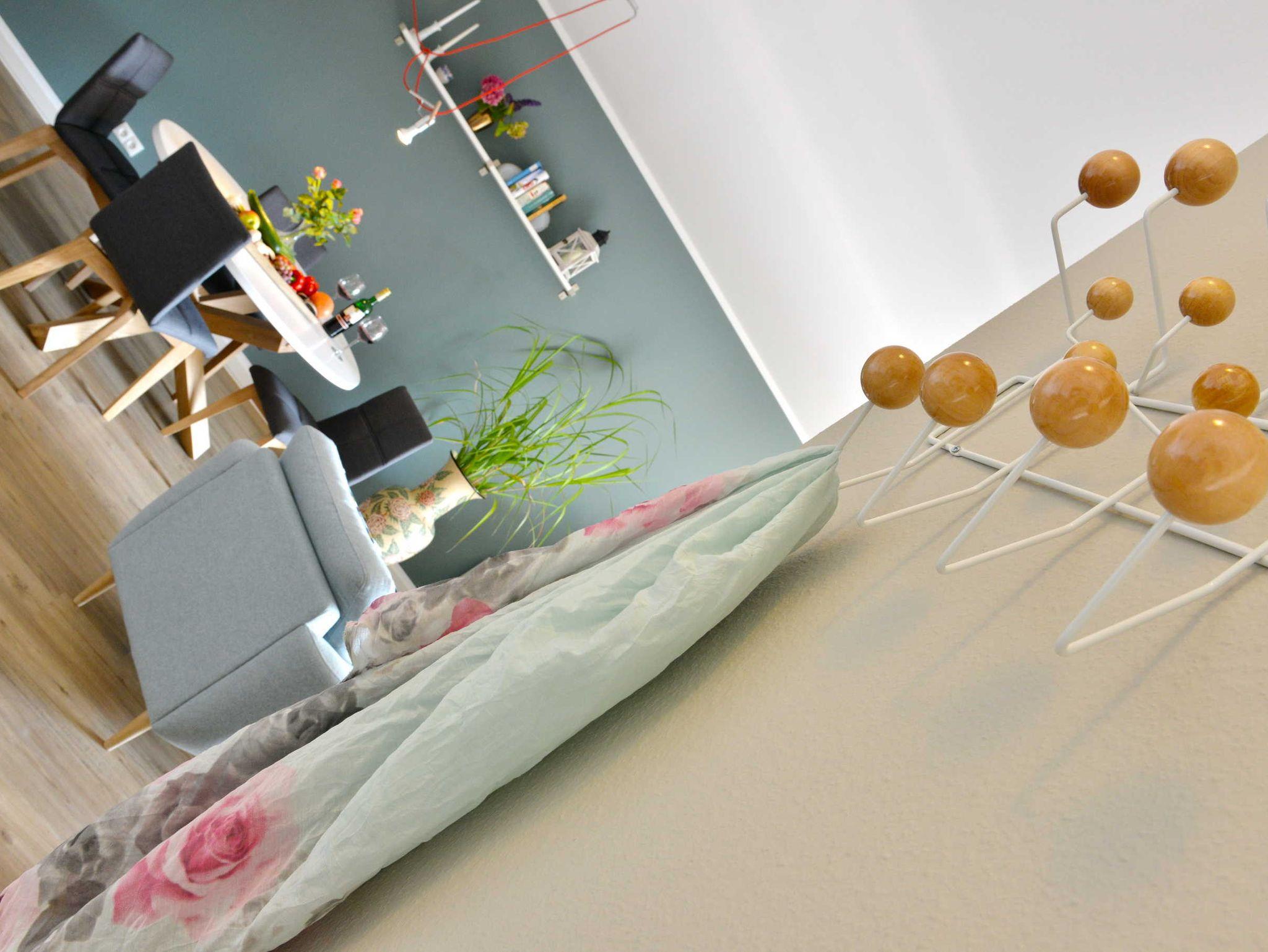 Die Strandwohnung Wassermusik besitzt im Schlafzimmer ein komfortables Doppelbett, im Wohnbereich befindet sich eine gemütliche Schlafcouch (140x200cm).