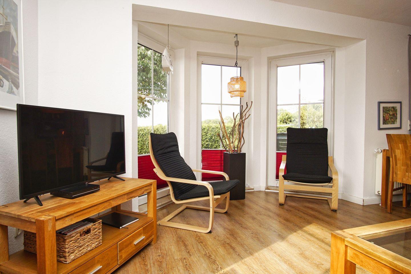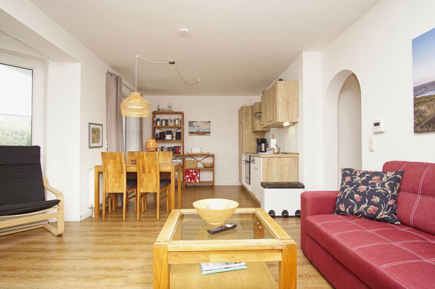 WOHNEN // Wohnraum mit Essbereich, Sitzgarnitur mit bequemer Couch, Flachbild-TV (Kabel), Radio, DVD-Player ++