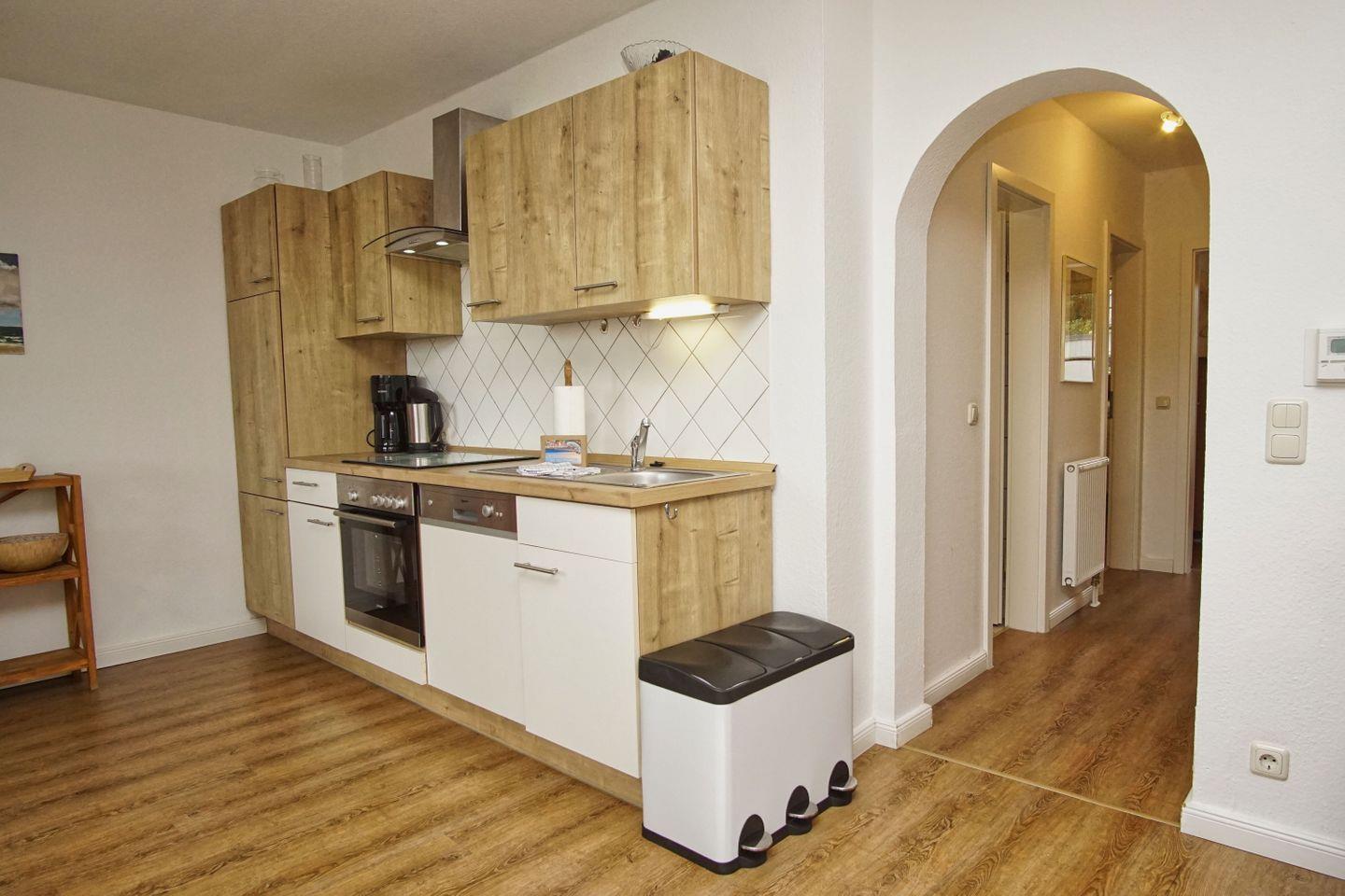 KÜCHE // offene Küche, 4-Felder Ceranherd, Spülmaschine, Kühlschrank mit Gefrierfach, Backofen, Toaster, Wasserkocher, Kaffeemaschine, reichlich Besteck, Geschirr und Küchenutensilien ++