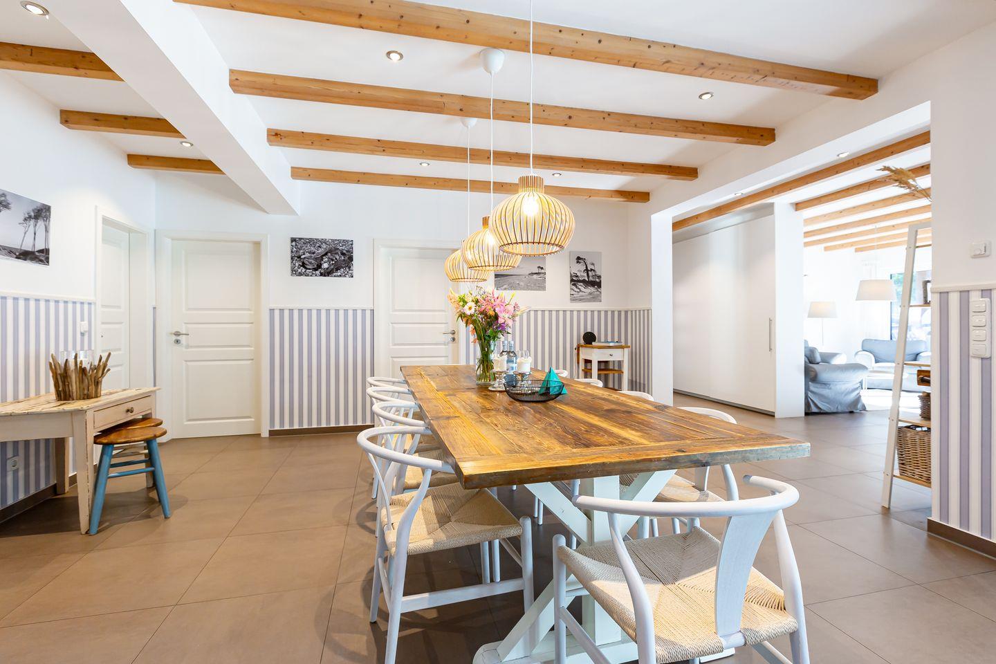 In unmittelbarer Strandlage, direkt hinter den Dünen und eingebettet von einem kleinen Kiefernwald, befindet sich dieses großzügige und modern ausgestattete Ferienhaus. Der Strandweg führt dich vom Grundstück aus durch die Dünenlandschaft geradewegs zum feinen weißen Sandstrand. Das Ortszentrum mit Einkaufsmöglichkeiten, Cafés und Restaurants ist knapp einen Kilometer entfernt.