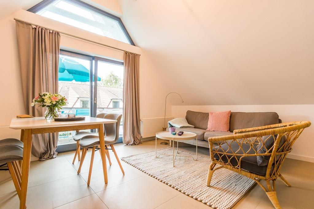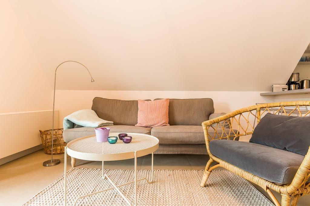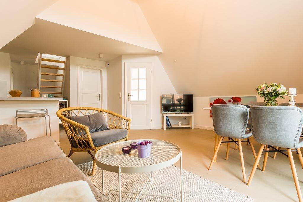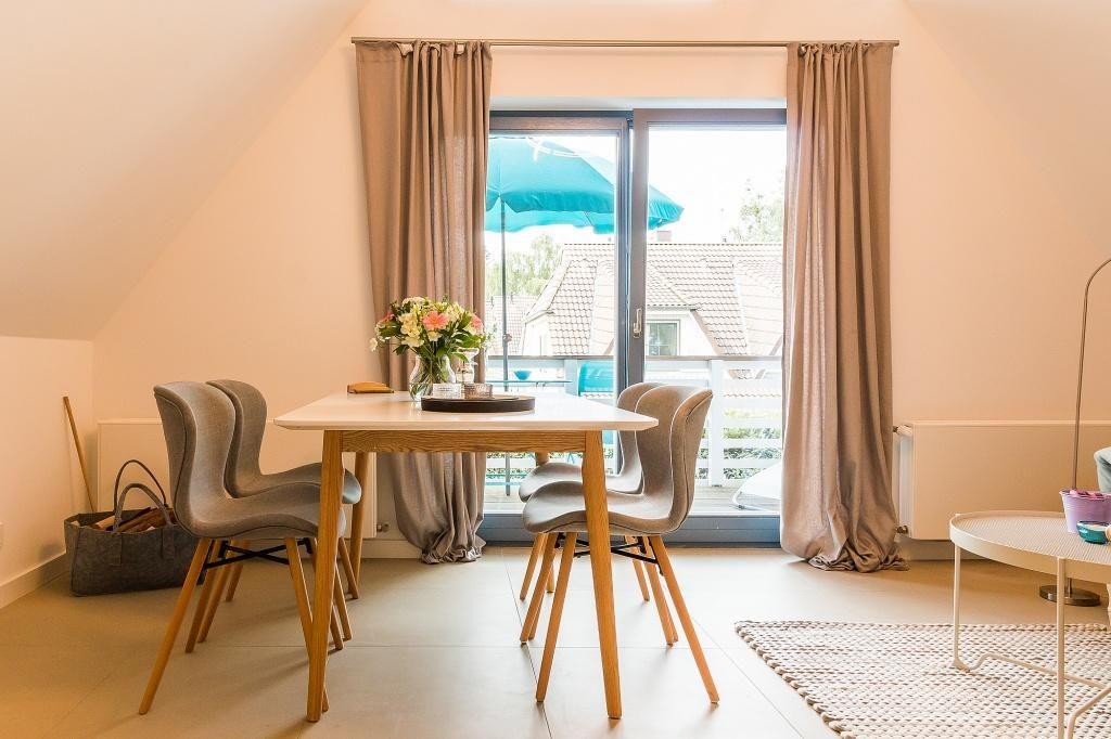Die Obergeschosswohnung mit separatem Eingang über eine Außentreppe begeistert durch ihren Mix aus schlichter Eleganz und skandinavischem Stil. Ihre Ausstattung ist insgesamt neu, hochwertig und geschmackvoll. Im Wohn- und Essbereich erwartet dich das gemütliche Sofa, ein Kaminofen und bodentiefe Fenster mit Austritt zum Balkon. Die vollständig eingerichtete Küchenzeile ist in den Wohnraum integriert und bietet dir zusammen mit dem Esstisch einen kommunikativen Raum zum Essen, Kochen und Klönen. Natürliche Materialien wie Holz finden sich auch im modernen Schlafzimmer wieder, welches mit einem Doppelbett ausgestattet ist. Ein Badezimmer mit Dusche/WC und Handtuchtrockner macht den Wohnkomfort perfekt.