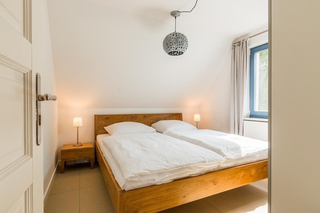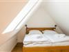 Über eine etwas steilere Treppe erreichst Du das zweite offene Schlafzimmer im Dachgeschoss, welches über ein Doppelbett sowie ein weiteres Liegebett verfügt.