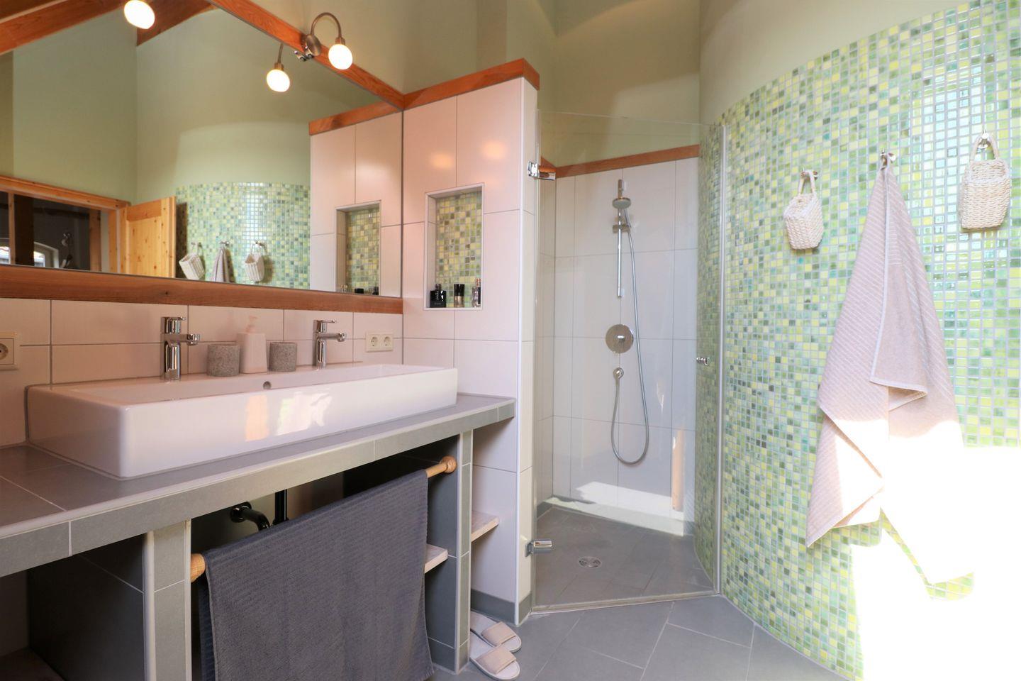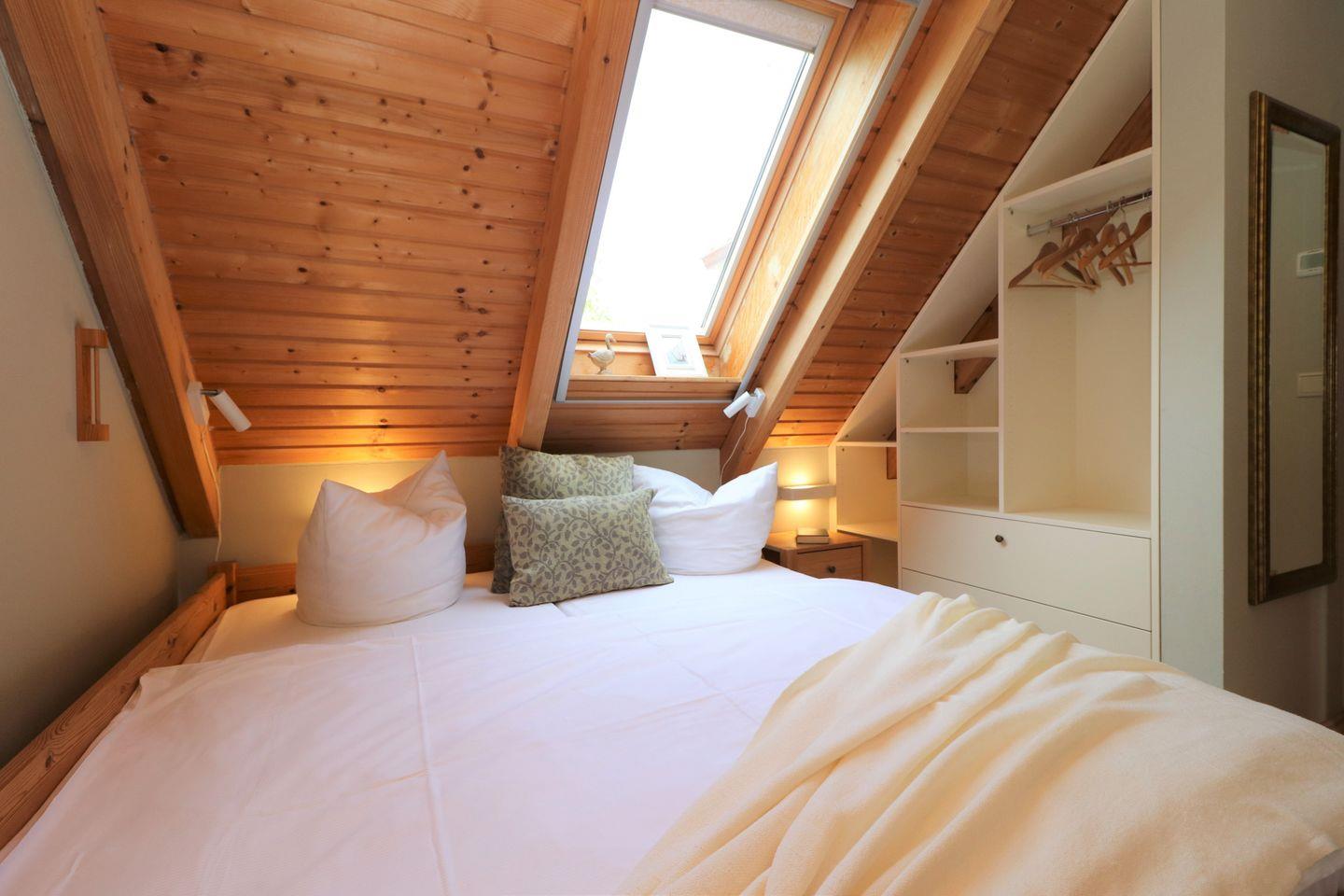 Das Ferienhaus „Bodderbloom“ bietet eine exklusive und individuell eingerichtete Ferienwohnung, die Platz für bis zu 4 Personen bietet. Die großzügigen, lichtdurchfluteten Wohnräume schaffen eine angenehme und einladende Atmosphäre, die zum Entspannen und Wohlfühlen einlädt. Die Ferienwohnung ist mit modernen Annehmlichkeiten ausgestattet, darunter ein Kamin für gemütliche Stunden, eine hochwertige Einbauküche für die Zubereitung von Mahlzeiten und eine Fußbodenheizung, die für zusätzlichen Komfort sorgt. Es stehen zwei separate Schlafzimmer mit Doppelbetten zur Verfügung, sodass jeder seinen eigenen Rückzugsort hat. Der Garten mit einem Grillplatz (Grill vorhanden) und ein Balkon laden zum Verweilen und Genießen der frischen Luft ein. Die Ferienwohnung befindet sich im Obergeschoss des Hauses und ist über eine Außentreppe vom Innenhof aus erreichbar. Mit dieser einzigartigen Mischung aus Komfort und Charme bietet das „Bodderbloom“ alles, was Sie für einen erholsamen Aufenthalt brauchen.