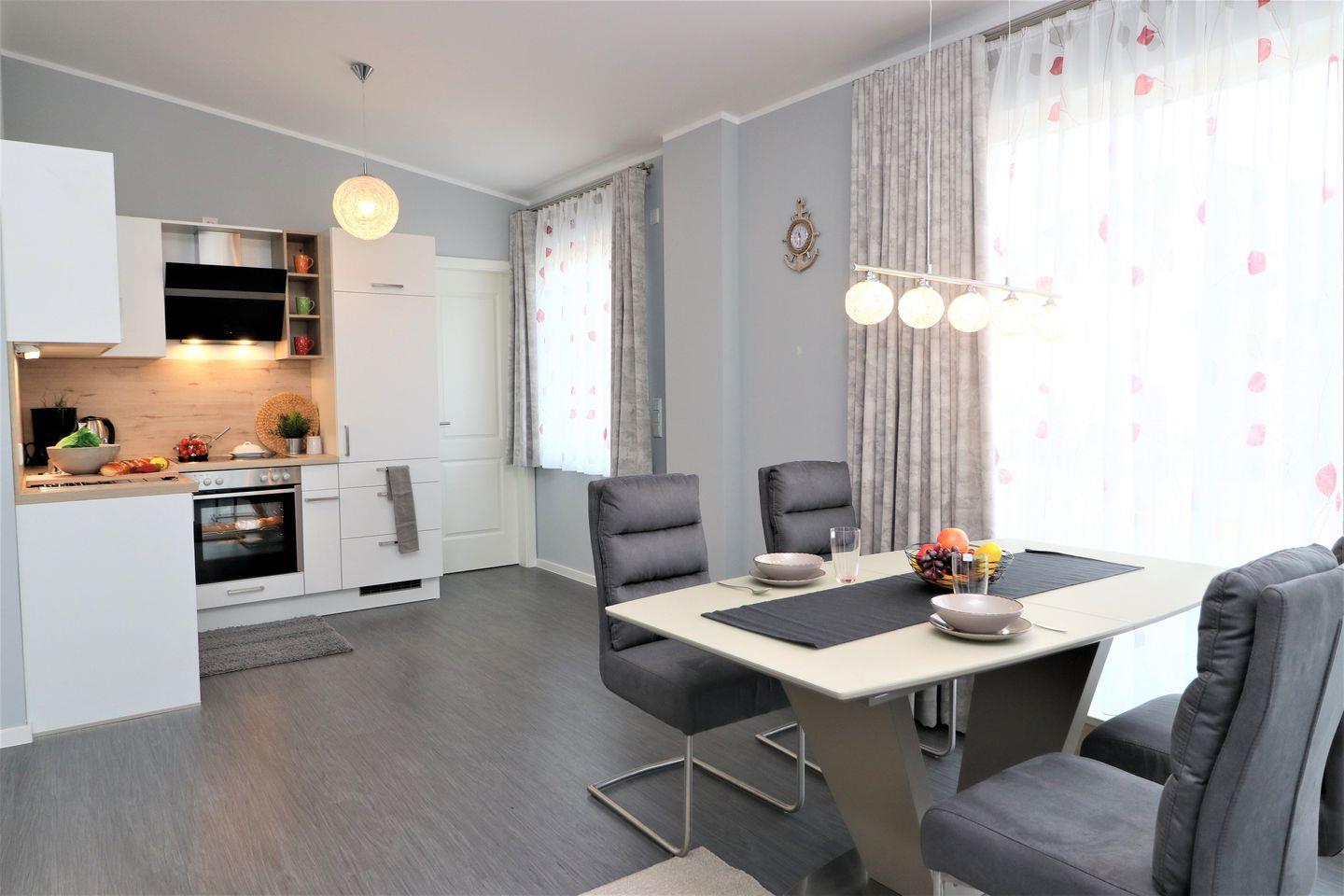 Dieses gemütliche Appartement im Dachgeschoss bietet auf 85 m² ausreichend Platz für bis zu 4 Personen und ist ideal für Familien oder Freunde, die einen erholsamen Urlaub in ruhiger Umgebung suchen. Das Wohnzimmer ist mit einem Kamin ausgestattet, der an kühleren Tagen für wohlige Wärme sorgt, und bietet eine integrierte Küchenzeile, die das Zubereiten von Mahlzeiten zum Vergnügen macht. Zwei Schlafzimmer mit Doppelbetten sorgen für erholsamen Schlaf und bieten ausreichend Stauraum. Das Bad ist mit einer Dusche und einem WC ausgestattet. Zu diesem Appartement gehören zwei Balkone, die zum Entspannen einladen und einen schönen Ausblick bieten. Es stehen zwei Pkw-Stellplätze direkt vor dem Haus zur Verfügung. Der Strand ist nur wenige Gehminuten entfernt und lädt zu ausgedehnten Spaziergängen und zum Sonnenbaden ein. Haustiere sind in diesem Appartement herzlich willkommen, jedoch ist das Rauchen nicht gestattet. Für Ihre Verbindung zur Außenwelt steht Ihnen kostenloses W-LAN zur Verfügung.