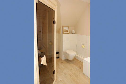 Das charmante Haus „Sommerlicht“ ist eine Doppelhaushälfte mit 122 qm und bietet Platz für bis zu 7 Personen. Es eignet sich hervorragend für größere Familien oder Gruppen, die Komfort und Gemütlichkeit in einer schönen Umgebung suchen. Im Erdgeschoss finden Sie ein gemütliches Wohnzimmer mit offener Küche und Kamin, das für eine behagliche Atmosphäre sorgt. Ein Gästebad mit Dusche/WC ist ebenfalls im Erdgeschoss vorhanden. Zwei Terrassen, eine nach Osten und eine nach Süden ausgerichtet, laden dazu ein, den Tag mit einem Frühstück in der Sonne oder einem entspannenden Abend zu genießen. Im Obergeschoss befinden sich zwei Schlafzimmer, jeweils mit einem Doppelbett ausgestattet, sowie ein weiteres Schlafzimmer mit einem Einzelbett. Das großzügige Badezimmer im Obergeschoss bietet sowohl eine Dusche als auch eine Badewanne und ist damit ideal zum Entspannen. Zusätzlich finden Sie hier eine Sauna, die kostenfrei genutzt werden kann – perfekt für die kälteren Monate. Das Dachgeschoss beherbergt ein weiteres Schlafzimmer mit zwei Einzelbetten, das besonders für Kinder oder Freunde geeignet ist. Das Ferienhaus bietet zwei PKW-Stellplätze direkt am Haus. Haustiere sind hier herzlich willkommen, jedoch ist das Rauchen im gesamten Haus nicht gestattet. Für Ihre Unterhaltung und Kommunikation steht Ihnen seit Sommer 2024 kostenloses schnelles Internet dank Glasfaseranschluss zur Verfügung.