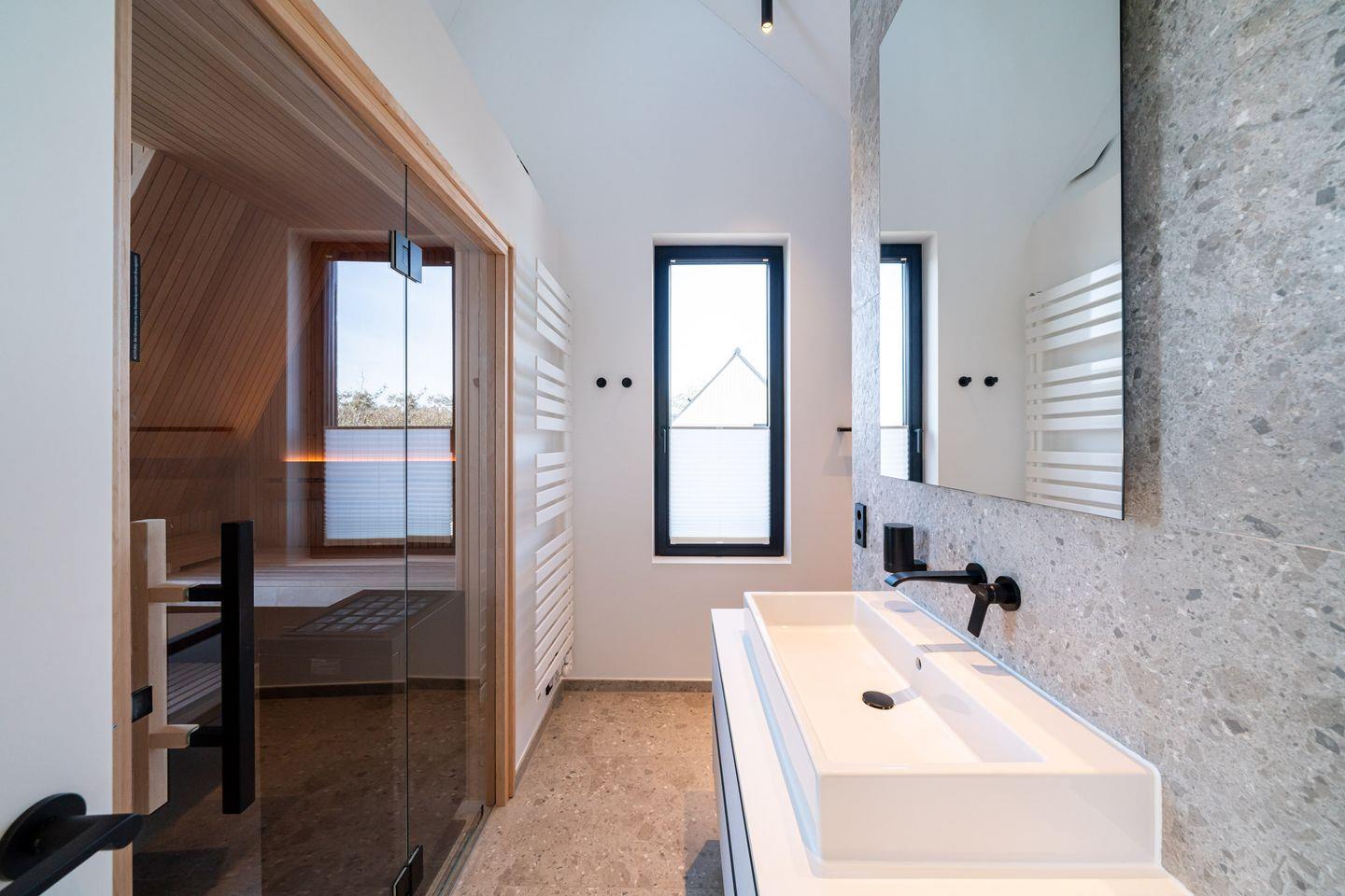 Ein besonderes Highlight ist die hauseigene finnische Sauna mit Meerblick. Die Kombination aus Ostsee-Panorama und wohltuender Wärme schafft ein einzigartiges Erlebnis. Nach einem Spaziergang entlang der Küste oder einem Bad im Meer wird der Saunagang zu einem stillen Moment des Rückzugs.