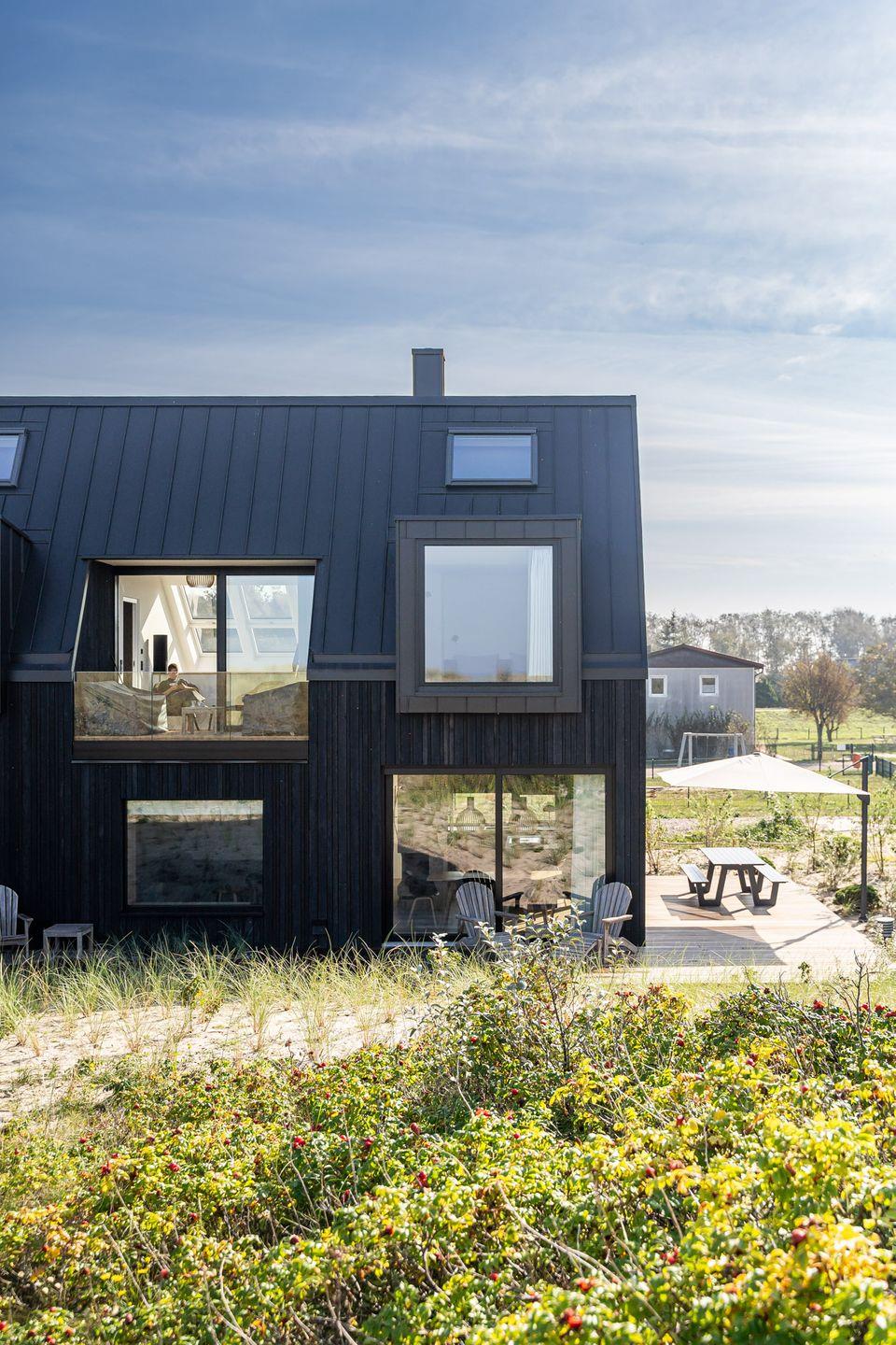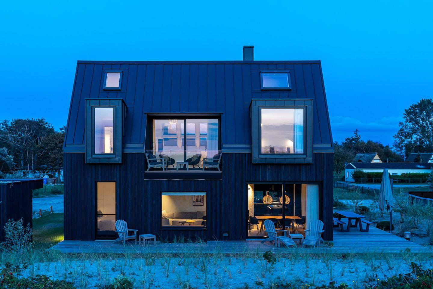 Willkommen im Dünenhaus Dierhagen. Direkt hinter der Düne des Dierhagener Ostseestrandes liegt dieses außergewöhnliche Ferienhaus in erster Reihe zur Ostsee. Ein modernes Architektenhaus mit schwarzer Holzfassade und Zinkdach – klar gestaltet, hochwertig ausgestattet und mit freiem Blick auf das Meer.