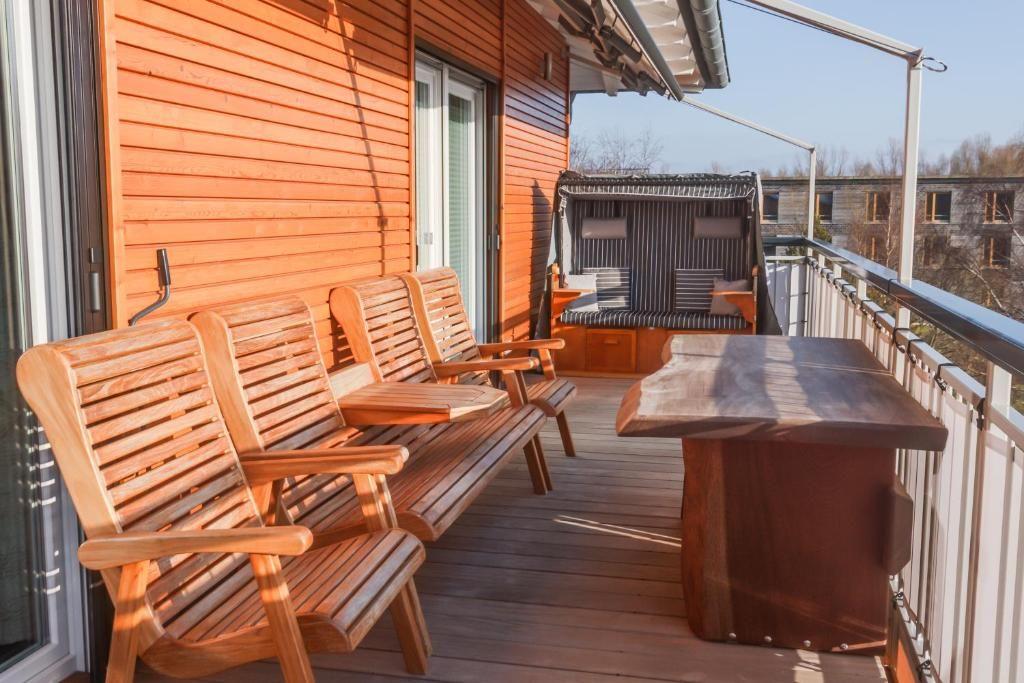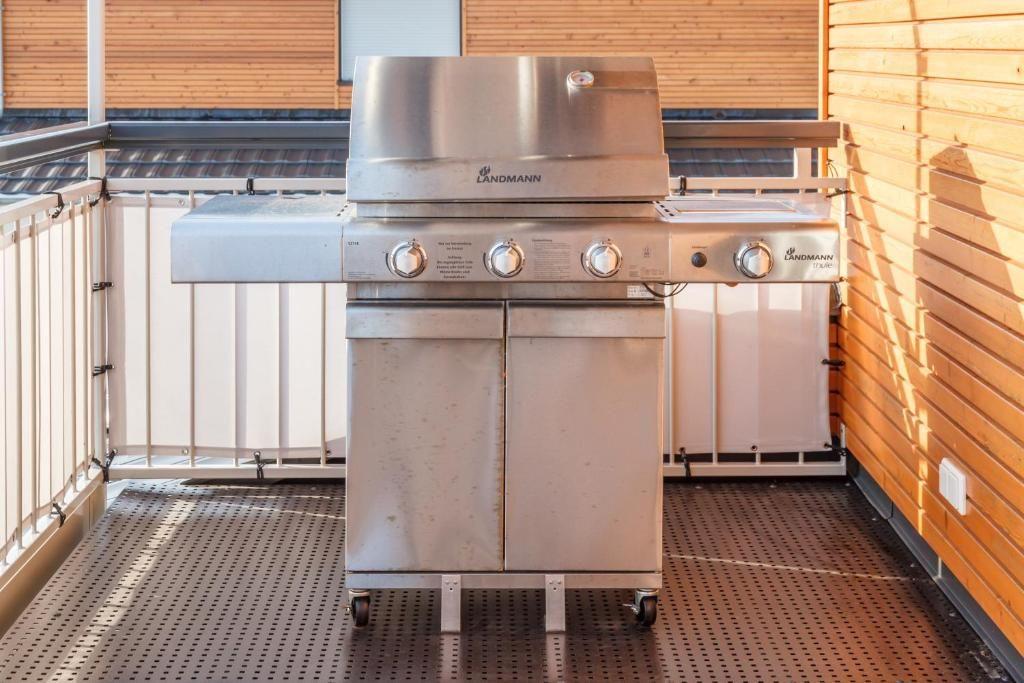 Draußen lädt der Balkon mit Gartenmöbeln, Sonnenschirm, Sonnenschutz und Sonnenliegen zum Entspannen ein. Zusätzlich profitieren Sie von Wellness-Highlights zur Eigennutzung: Whirlpool/Hottub und Sauna bieten Erholung unabhängig vom Wetter. Ein Gasgrill ergänzt die Möglichkeiten für genussvolle Abende.