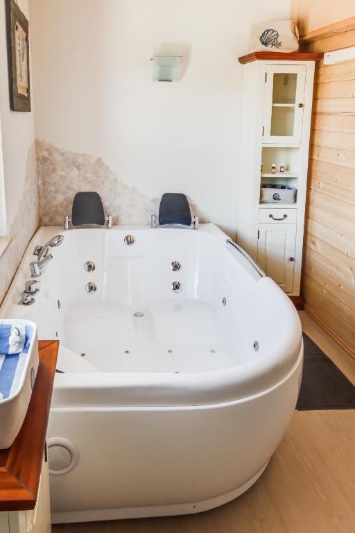 Penthouse „Meerblick“: 108 m² im 2. Stock mit 3 Zimmern, 2 Schlafzimmern, für bis zu 4 Personen. Allergikergeeignetes Nichtraucher-Domizil mit Balkon, Kaminofen, TV (Sat), Waschmaschine und offener Küche. Bad mit bodengleicher Dusche und Wanne, zusätzlich Gäste-WC. Wellness mit Sauna zur Eigennutzung und Whirlpool, 1 kostenloser Privatparkplatz. Strand und Meer nur 150 m.