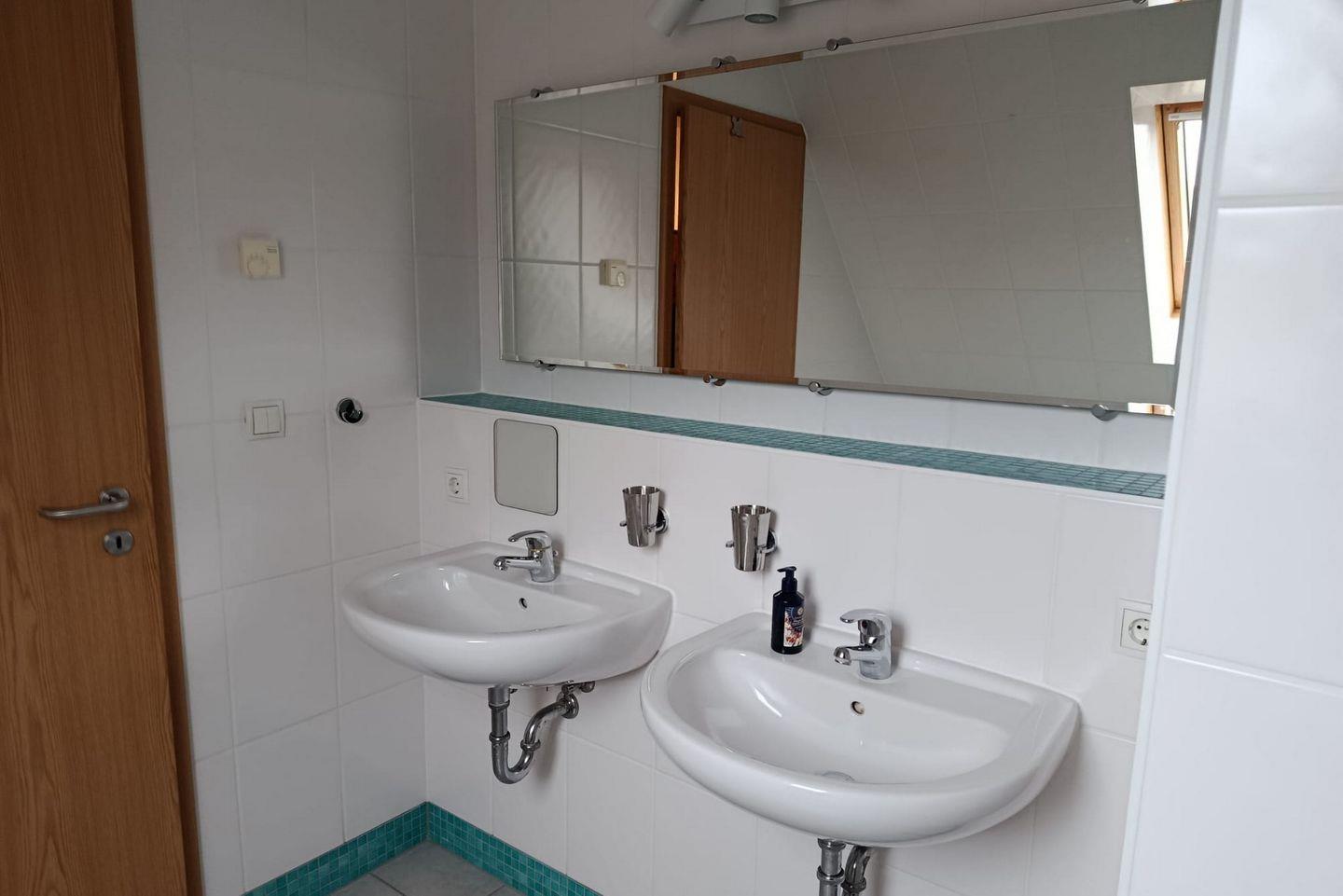 Das Ferienhaus mit Terrasse und Garten verfügt über zwei Geschosse und zwei Badezimmer: ein Bad mit Dusche und Doppelwaschbecken im Dachgeschoss, ein zweites Bad mit Dusche im Erdgeschoss. Die drei separaten Schlafzimmer (ein Schlafzimmer mit Doppelbett, ein Schlafzimmer mit zwei Einzelbetten und ein Kinderzimmer mit zwei Einzelbetten) können auf Anfrage und gegen Entgelt zusätzlich mit zwei Kinderbetten aufgestockt werden. Einen Hochstuhl könnt ihr auf Wunsch entgeltlich dazu buchen.