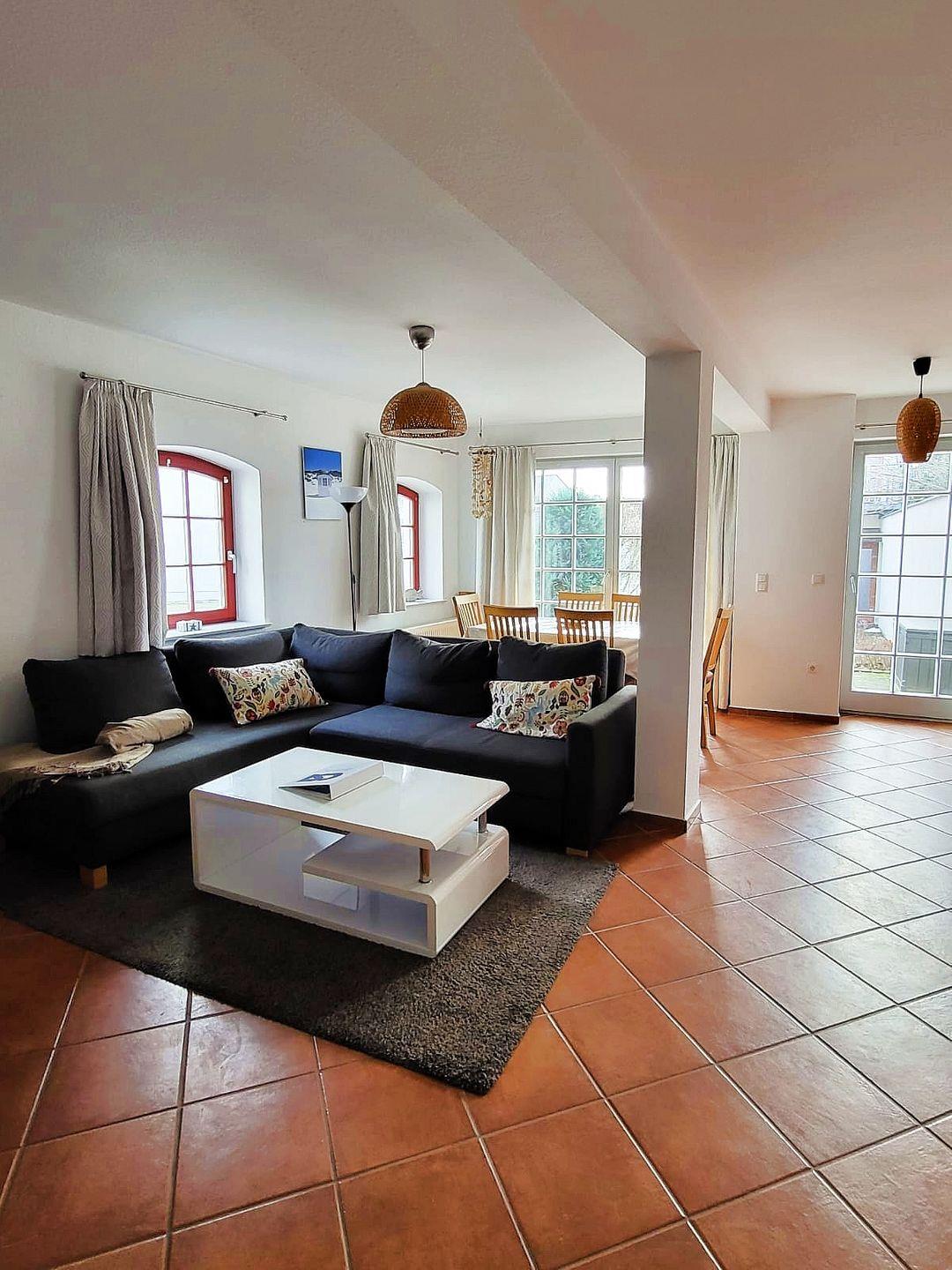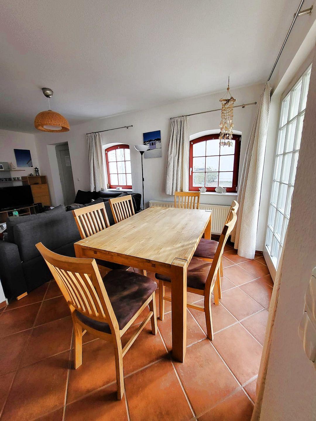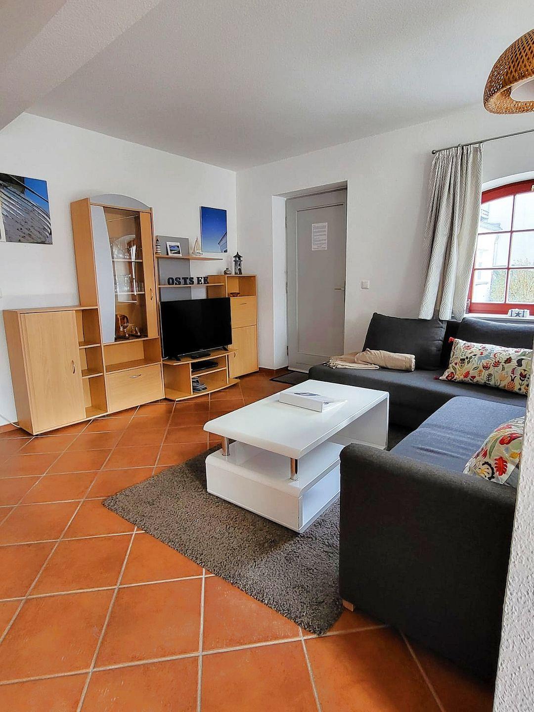 Großzügig geschnittene Erdgeschoßwohnung mit sonniger Terrasse. Die Ferienwohnung ist modern und hochwertig ausgestattet und verfügt über eine Zentralheizung inkl. Fußbodenheizung im Badezimmer. Im Wohnbereich befindet sich eine bequeme Schlafcouch für zwei Personen und eine kleine Spielecke für Kinder. Die Küche ist komplett eingerichtet. Das Appartement verfügt über zwei separate Schlafzimmer (ein Doppelbett, zwei Einzelbetten). Im großen Schlafraum stehen eine Wickelkommode und ein Reisekinderbett zur Verfügung. Ein kostenfreier Parkplatz befindet sich auf dem Grundstück (ist analog zu der Wohnung mit 11 beschriftet) und kostenfreies Wlan ist verfügbar. Haustiere nicht gestattet.