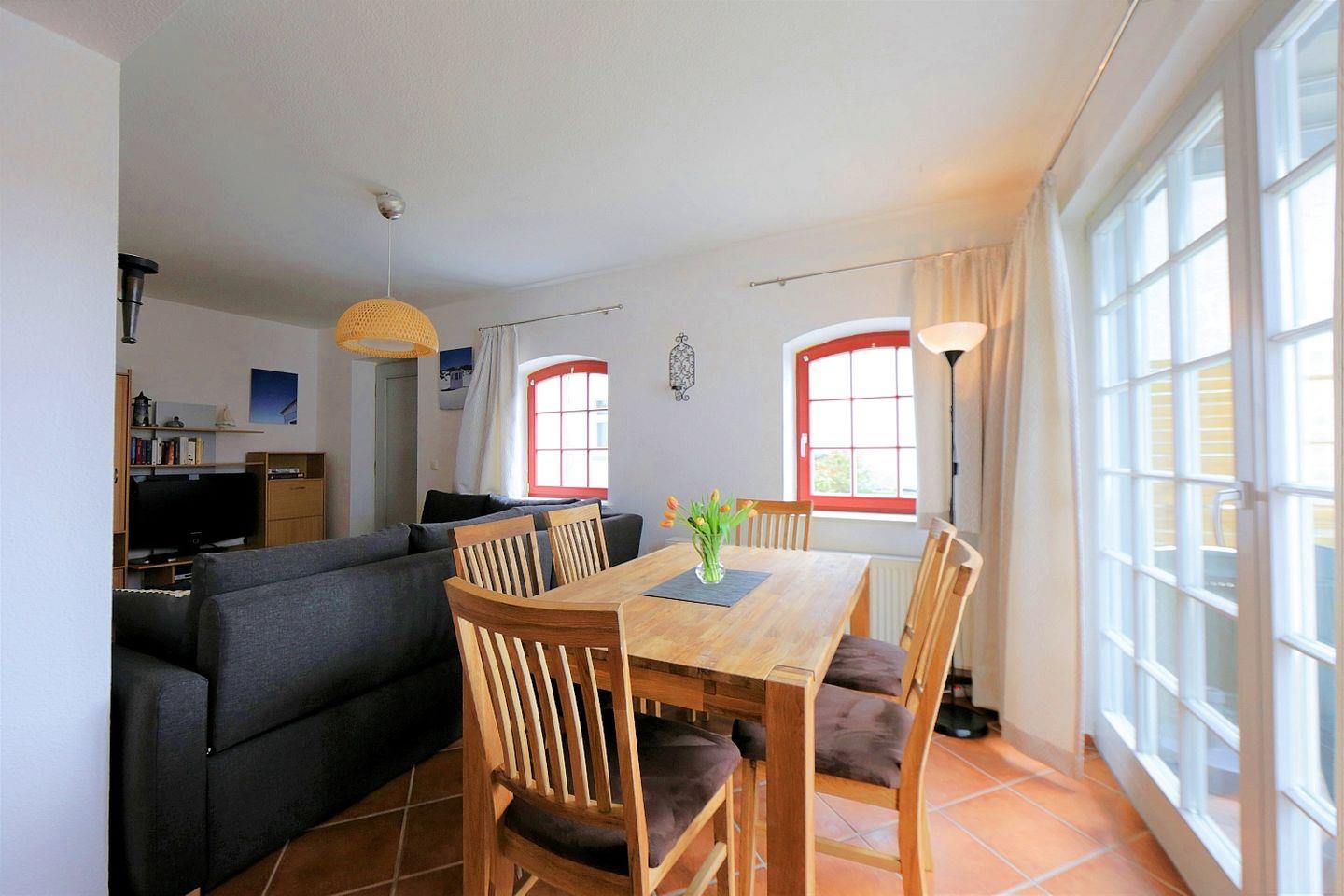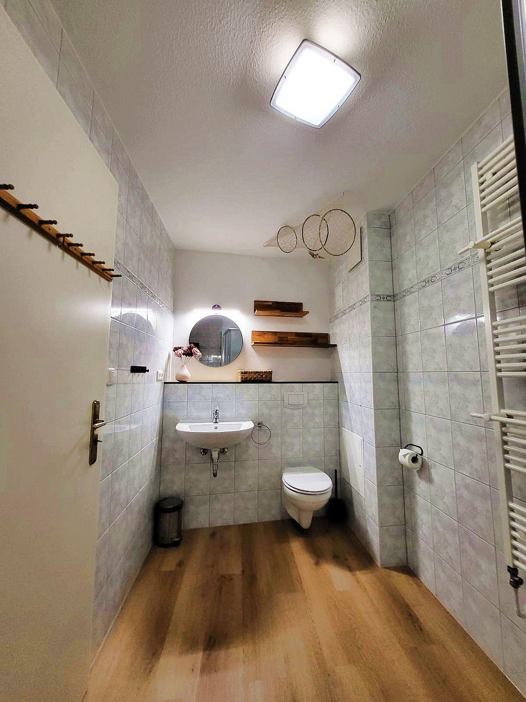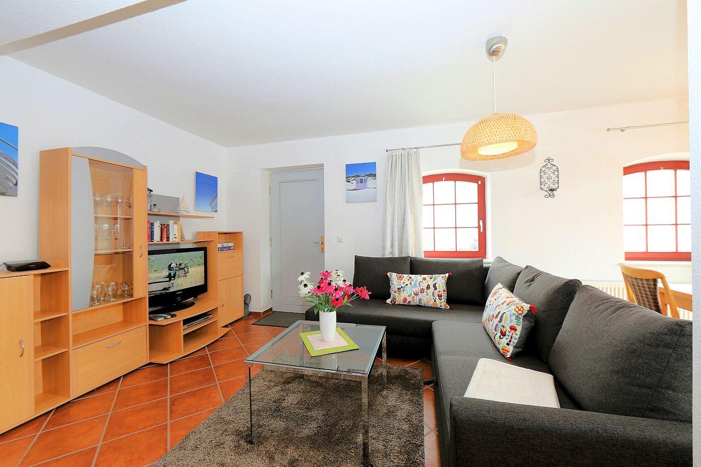 Großzügig geschnittene Erdgeschoßwohnung mit sonniger Terrasse. Die Ferienwohnung ist modern und hochwertig ausgestattet und verfügt über eine Zentralheizung inkl. Fußbodenheizung im Badezimmer. Im Wohnbereich befindet sich eine bequeme Schlafcouch für zwei Personen und eine kleine Spielecke für Kinder. Die Küche ist komplett eingerichtet. Das Appartement verfügt über zwei separate Schlafzimmer (ein Doppelbett, zwei Einzelbetten). Im großen Schlafraum stehen eine Wickelkommode und ein Reisekinderbett zur Verfügung. Ein kostenfreier Parkplatz befindet sich auf dem Grundstück (ist analog zu der Wohnung mit 11 beschriftet) und kostenfreies Wlan ist verfügbar. Haustiere nicht gestattet.