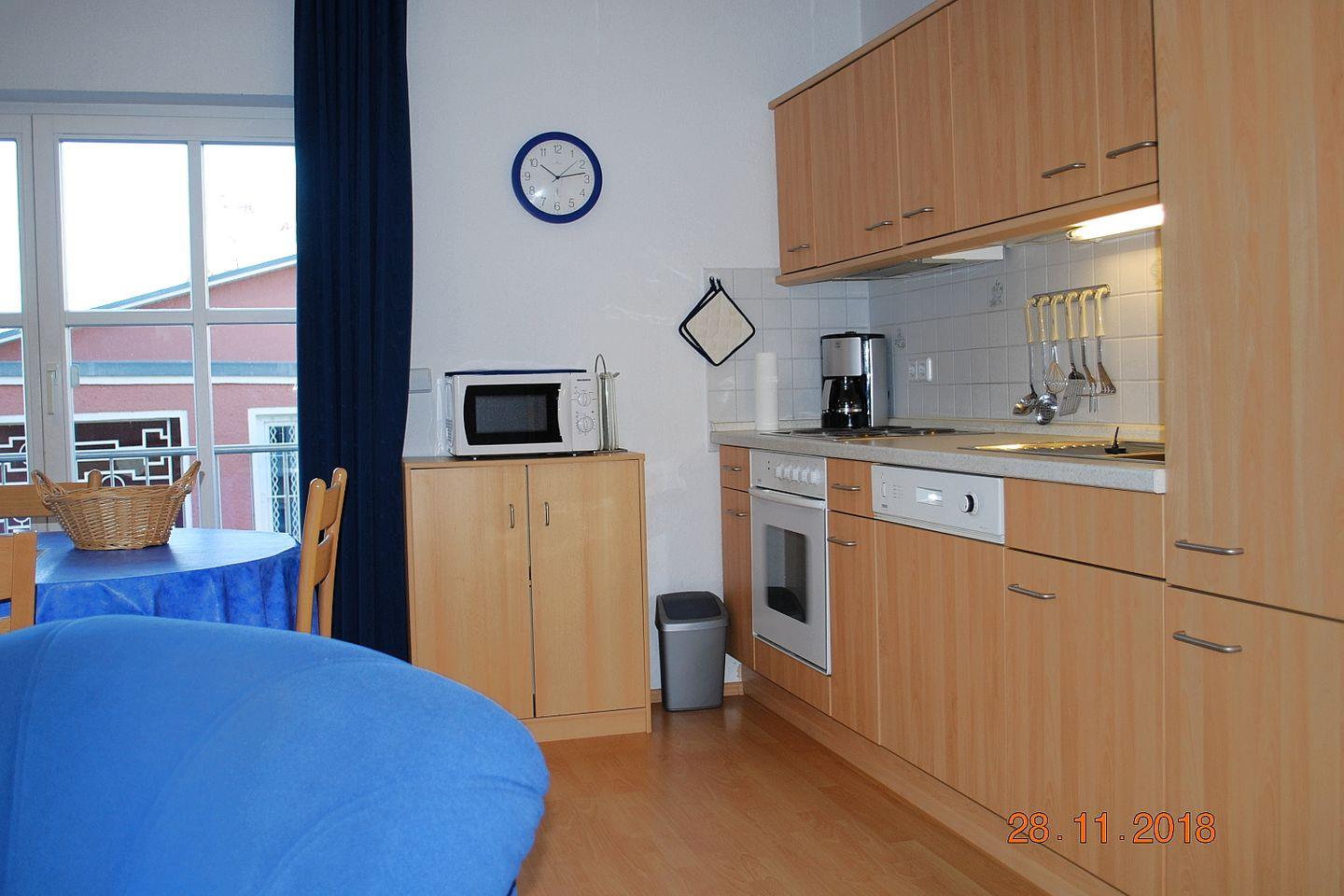 Das 45 m² große Appartement befindet sich im 1.OG und ist mit einem großzügigen Wohnraum mit offener voll ausgestatteter Küche und Essplatz, einem Duschbad, einem Balkon und einem Schlafraum mit Doppel- und Einzelschrankbett ausgestattet. Kostenfreies Wlan steht zur Verfügung. Haustiere sind leider nicht gestattet.