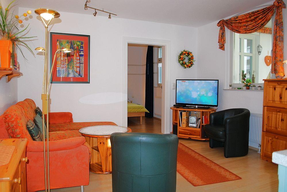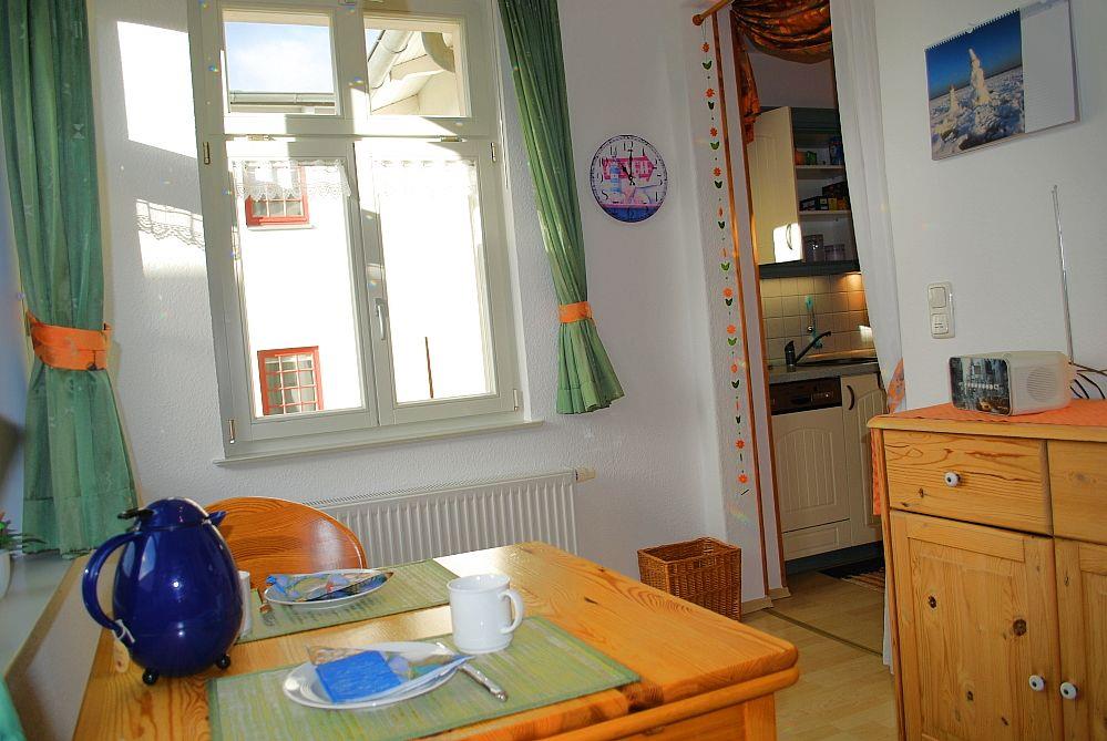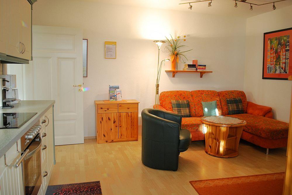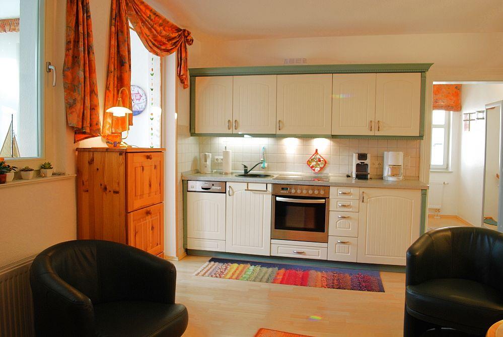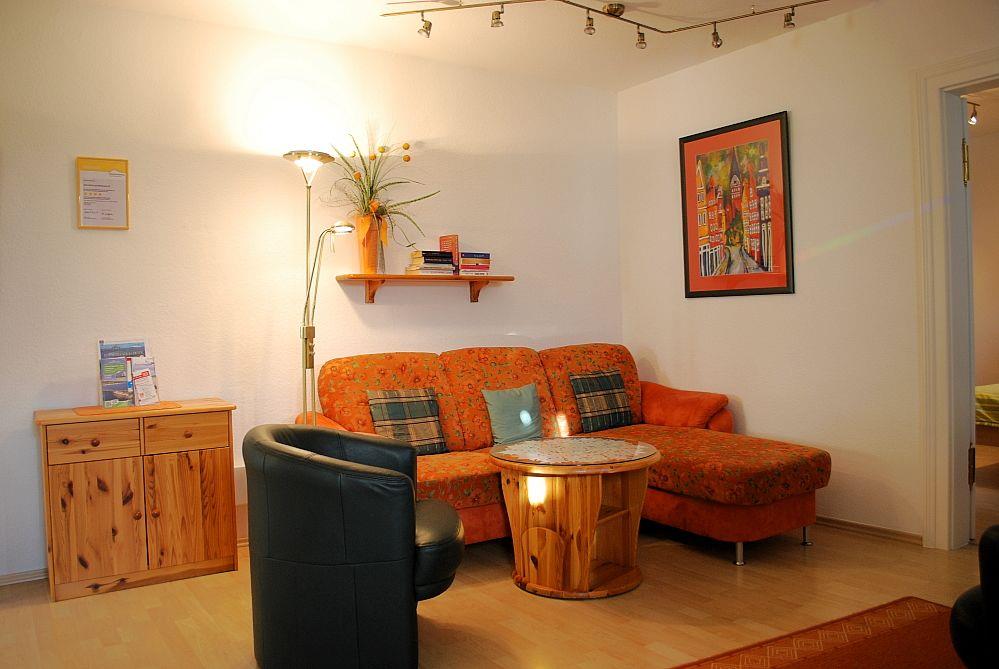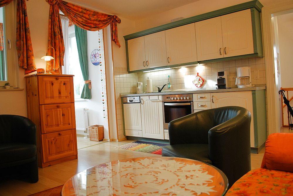 Das schöne und geräumige 52 m² große Appartement verfügt über einen Wohnraum mit Doppelsofa und Sessel, einer voll ausgestatteten Küchenzeile und einen separaten Essplatz in der Veranda, kostenfreies Wlan, eine (Dach)Terrasse, einen Schlafraum (Doppelbett) und ein Duschbad. Haustiere sind leider nicht gestattet, ein PKW-Stellplatz steht zur Verfügung.