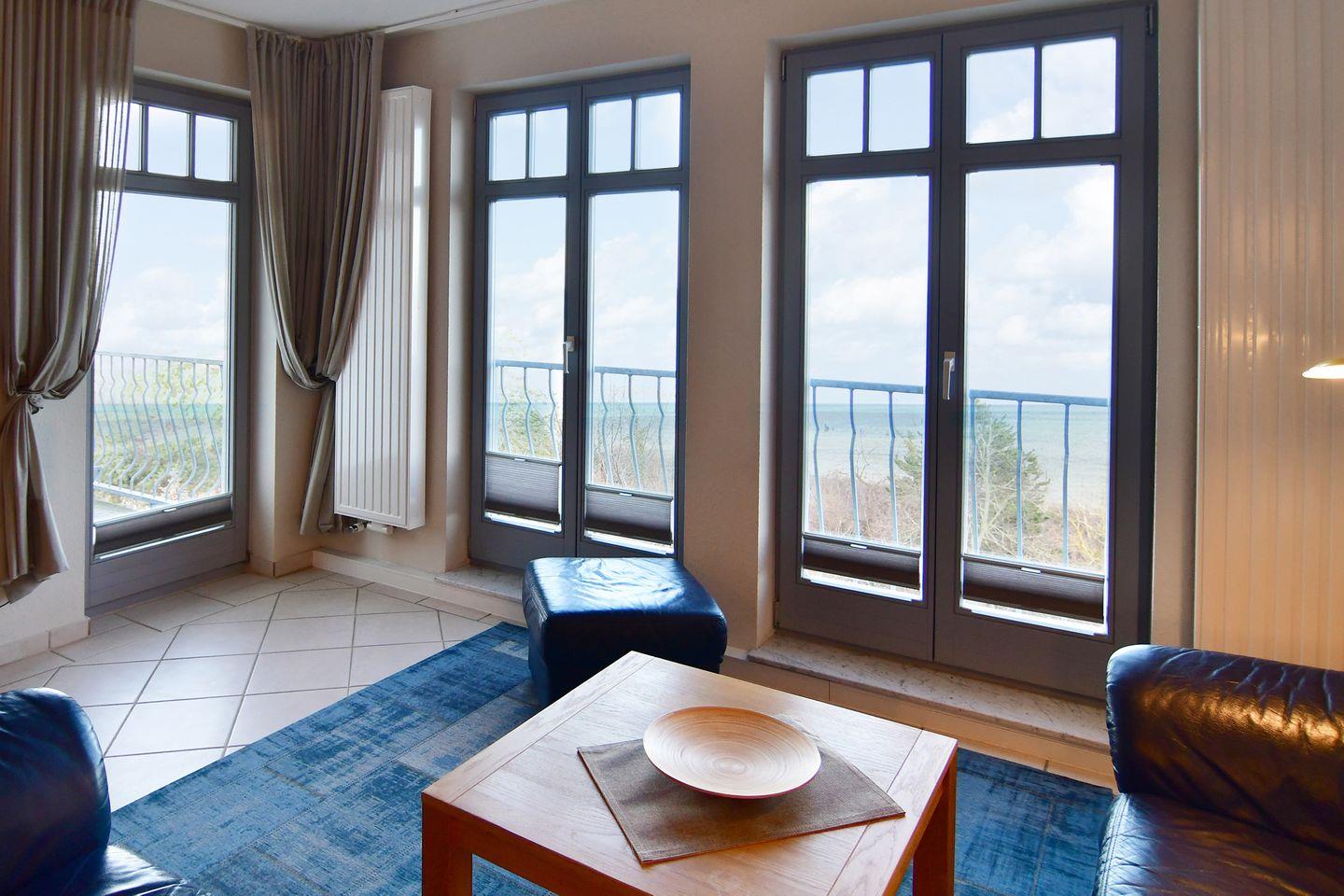 Das 58 m² große Appartement 07 befindet sich im 1.OG und das ganz Besondere ist der freie Ostseeblick von oben aus bodentiefen Fenstern. Sie verfügt über einen großen Wohnraum mit offener voll ausgestatteter Küchenzeile und Essplatz, sowie 2 Schlafzimmern und einem Duschbad. Auch der Balkon aus haben Sie einen unverbautem, freien und direkten Blick auf die Ostsee. Das Duschbad und die zwei Schlafräume (Doppelbett und zwei Einzelbetten) sorgen dafür, dass sich 4 Personen rundum wohl fühlen können.. Es stehen kostenfreies WLAN, ein PKW-Stellplatz .(Beschriftung: Schünemann 7) und ein Abstellraum für Fahrräder zur Verfügung. Gegen Gebühr können im Keller des Hauses Waschmaschine und Trockner genutzt werden. Haustiere sind auf Anfrage gestattet. Einkaufsmöglichkeiten und Restaurationen befinden sich am unteren Ende der Badstr. Der Weg bis ins Zentrum von Heringsdorf beträgt ca. 600 Meter.
