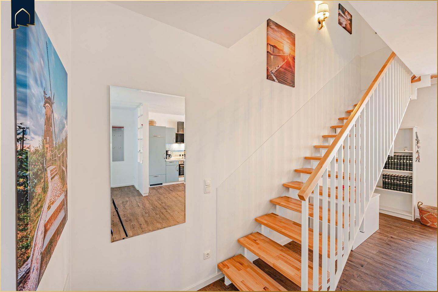 Das liebevoll eingerichtete Ferienhaus bietet nicht nur im Inneren hohen Komfort, sondern auch im Außenbereich. Genießen Sie entspannte Stunden auf der möblierten Terrasse mit Blick in den gepflegten Garten. Gartenmöbel, Sonnenschirm und Windschutz machen den Außenbereich zu einem idealen Ort für gemeinsame Mahlzeiten oder einfach zum Entspannen. Für Familien stehen Extras wie ein Treppengitter, Wäscheständer, Bügelset und Mixer bereit. Ein privater Parkplatz direkt am Haus rundet das Gesamtpaket ab.