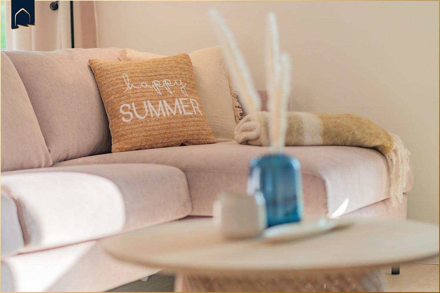 Mach’s dir auf dem Sofa gemütlich, das sich im Handumdrehen in ein vollwertiges Bett mit Matratze verwandeln lässt. Ob Serienabend mit Freunden oder Frühstücksfernsehen zu zweit im Bett – der 65-Zoll-Smart-TV bringt echtes Kinofeeling in dein Urlaubsdomizil. Und wer morgens lieber Radio hört, kann sich über die hochwertige HiFi-Anlage mit Internetradio freuen.