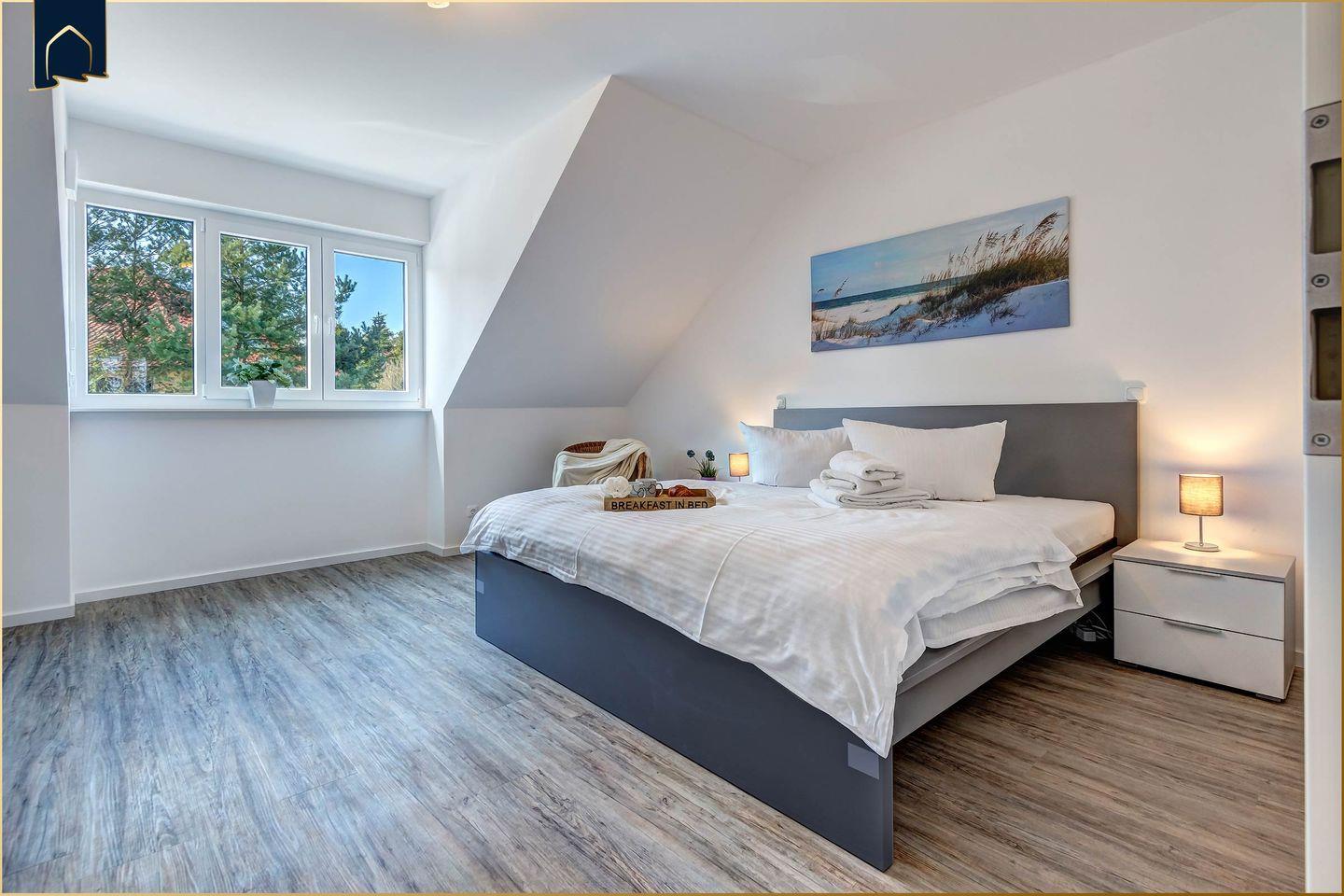 Im Obergeschoss erwarten Sie zwei gemütliche Schlafzimmer. Das Elternschlafzimmer bietet ein komfortables Doppelbett und einen geräumigen Kleiderschrank, während das zweite Zimmer mit zwei Einzelbetten ideal für Kinder oder Freunde geeignet ist. Auch auf dieser Etage steht Ihnen ein zweites Badezimmer mit Dusche und WC zur Verfügung.