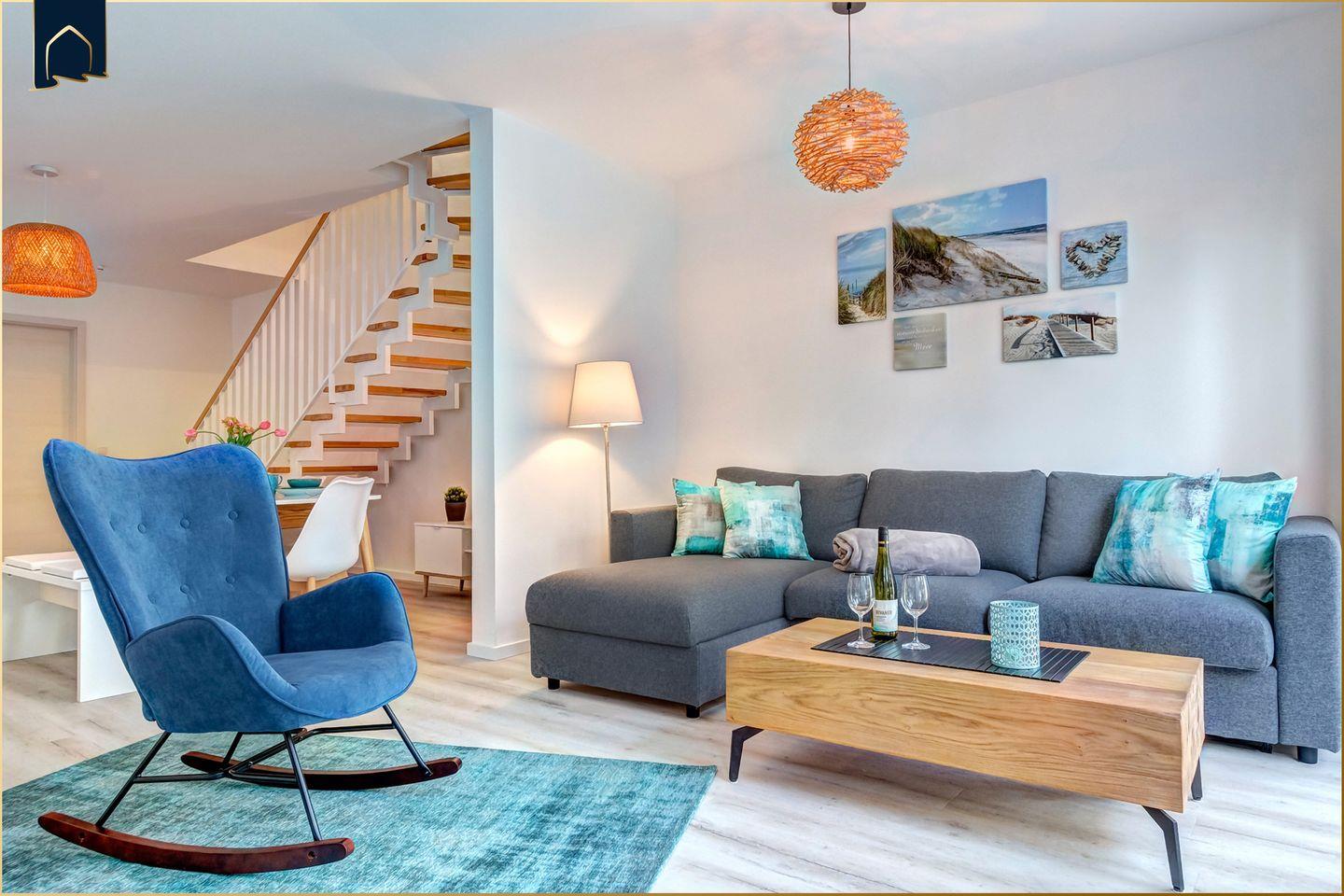 Das moderne Reihenhaus Ostseenest Bernstein befindet sich im Ostseebad Kölpinsee auf der Insel Usedom und bietet eine komfortable Unterkunft für bis zu 6 Personen. Die geschmackvolle Gestaltung, helle Räume und die durchdachte Raumaufteilung auf zwei Etagen schaffen eine angenehme Wohnatmosphäre für einen erholsamen Aufenthalt in Strandnähe.