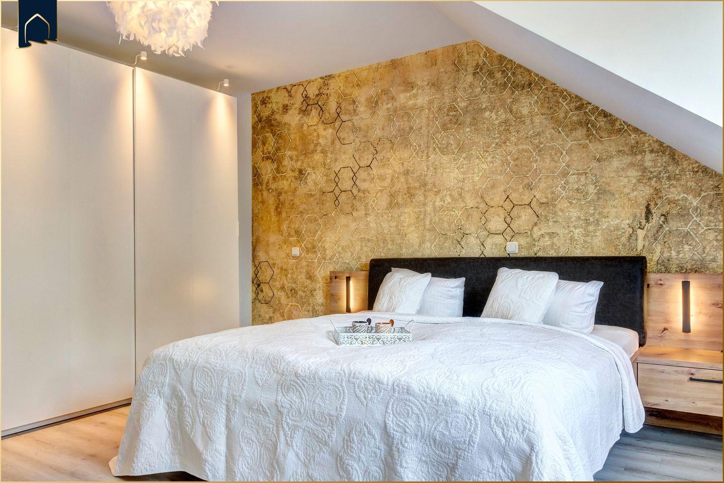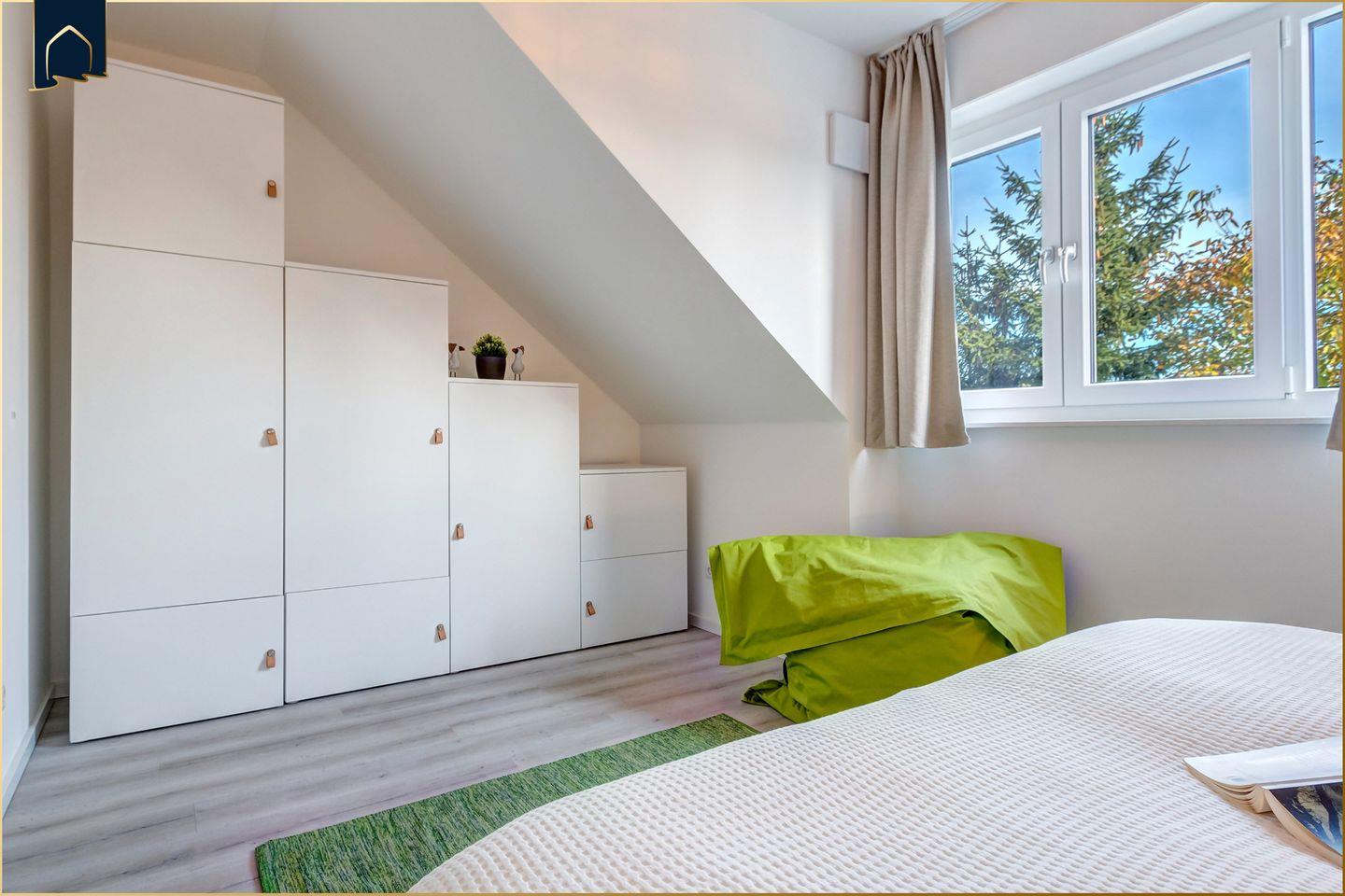 Das Reihenhaus bietet zwei Schlafzimmer mit Doppelbetten sowie zusätzliche Schlafmöglichkeiten auf dem Schlafsofa, sodass insgesamt sechs Schlafplätze zur Verfügung stehen. Die Schlafzimmer sind ruhig gelegen und bieten angenehme Rückzugsmöglichkeiten.