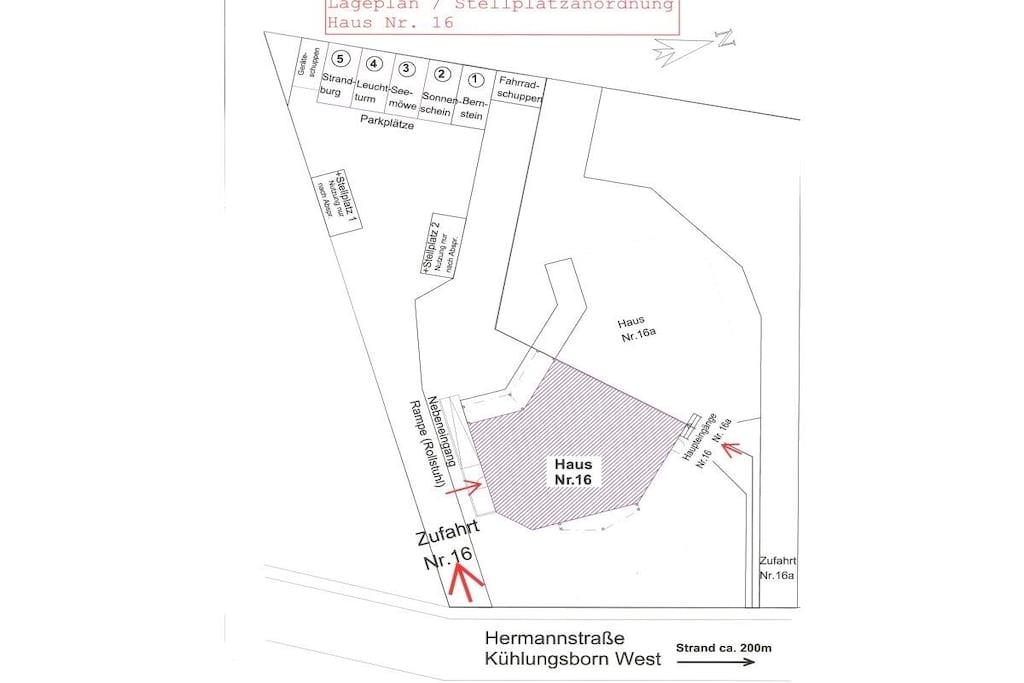 Afstande fra ferieboligen og placering på kort