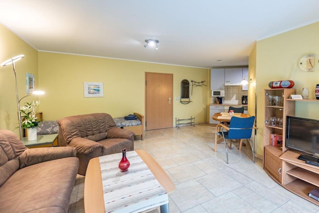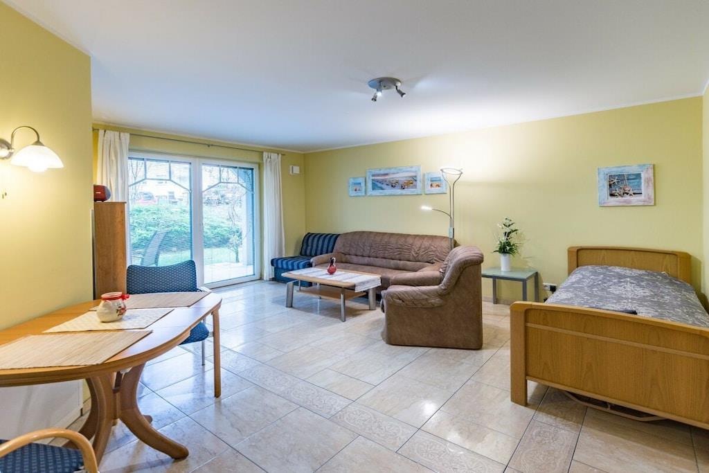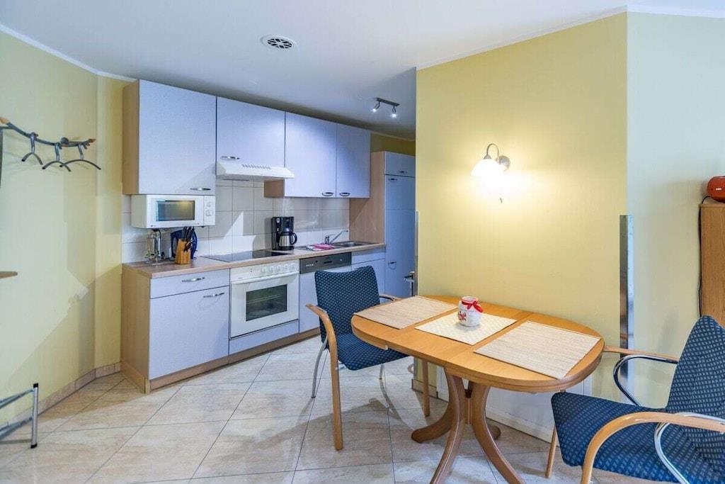Kælderetage: (åbent køkken(, tekøkken, spisebord, kakkelovn, kogeplade, elkedel, brødrister, kaffemaskine, ovn, mikrobølgeovn, opvaskemaskine , køleskab, fryser, varme), stue / spisestue(, , enkeltseng, Fjernsyn, spisebord, DVD-afspiller, radio, CD-afspiller, varme, havemøbler), soveværelse(, dobbeltseng, varme), badeværelse(, toilet, bruser, håndvask, varme, føntørrer)) , Internetadgang, tørretumbler, vaskemaskine, varme, terrasse(havemøbler), parkering, strygebræt, strygejern, tørreskab, Vaskeripakke mod et gebyr, telefon
