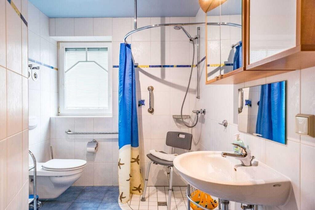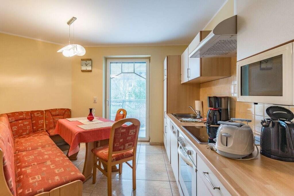 På 1. etage: (Stue(, , enkeltsovesofa, Fjernsyn, DVD-afspiller, radio, CD-afspiller, varme, havemøbler), Køkken(, spisebord, kakkelovn, radio, CD-afspiller, kogeplade, elkedel, brødrister, kaffemaskine, ovn, mikrobølgeovn, opvaskemaskine , køleskab, fryser, varme), soveværelse(, dobbeltseng, varme), soveværelse(, dobbeltseng, varme), badeværelse(, toilet, bruser, håndvask, varme, føntørrer), guest toilet(, toilet, håndvask, varme)) , Internetadgang, tørretumbler, vaskemaskine, balkon(havemøbler), varme, parkering, strygebræt, strygejern, tørreskab, telefon