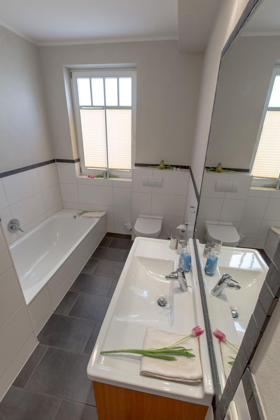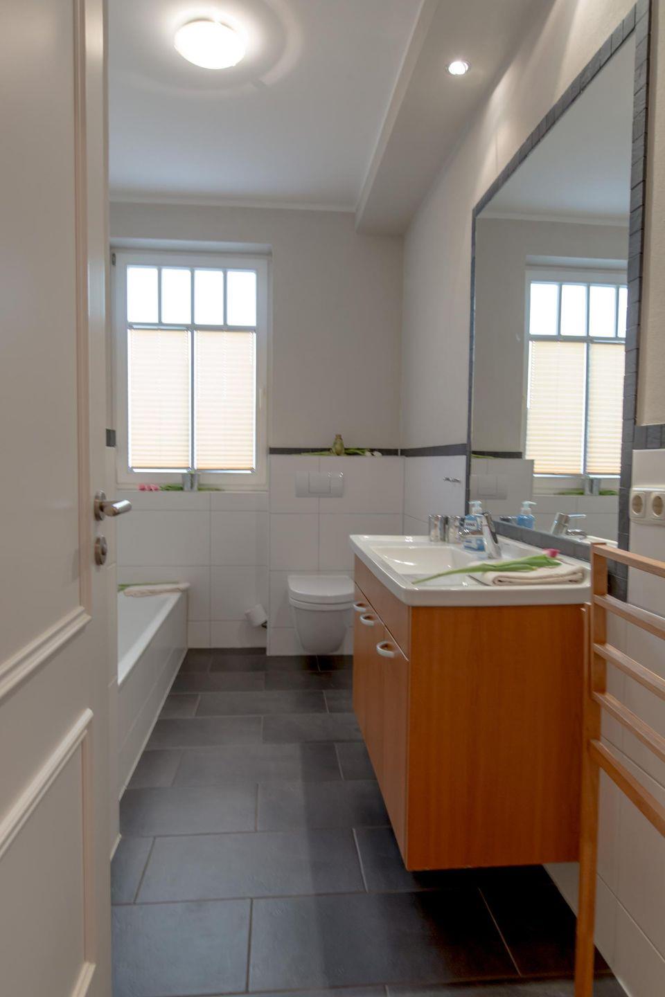 Die ca. 70 qm große 3-Zimmer-Ferienwohnung befindet sich im Gartengeschoss der Villa Senta. Haustiere sind erlaubt gegen Aufpreis.