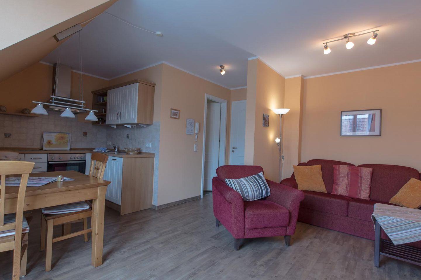 Sämtliche Appartements laden zum Wohlfühlen ein. Sie verfügen über Boxspringbetten, eine Küche, Lift, pro Wohnung 1 PKW-Stellplatz, Balkons und Terrassen im EG mit Strandkorb. Der Lift fährt bis in das 3. OG. Die Wohnung 16 ist dann über eine Treppe erreichbar.