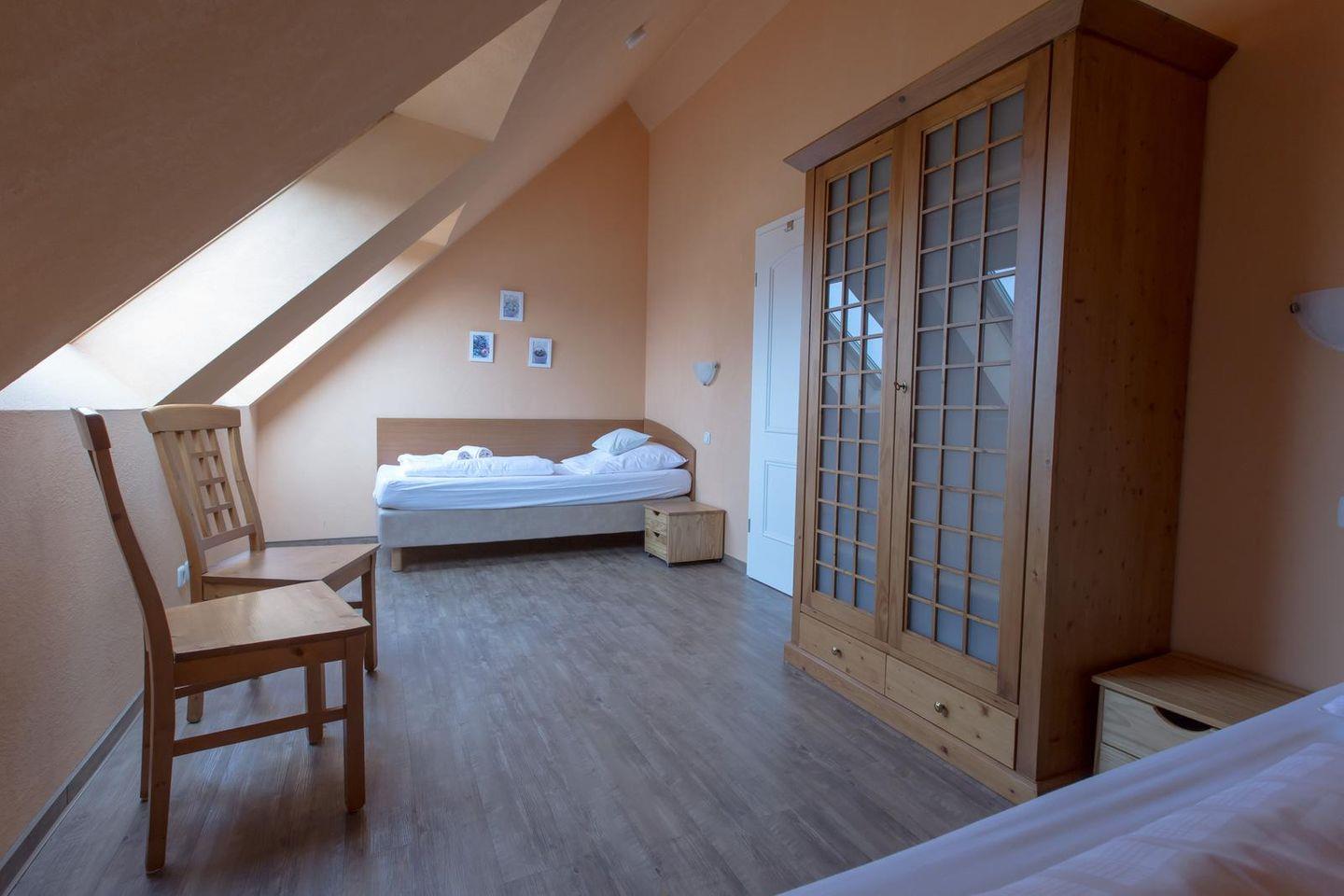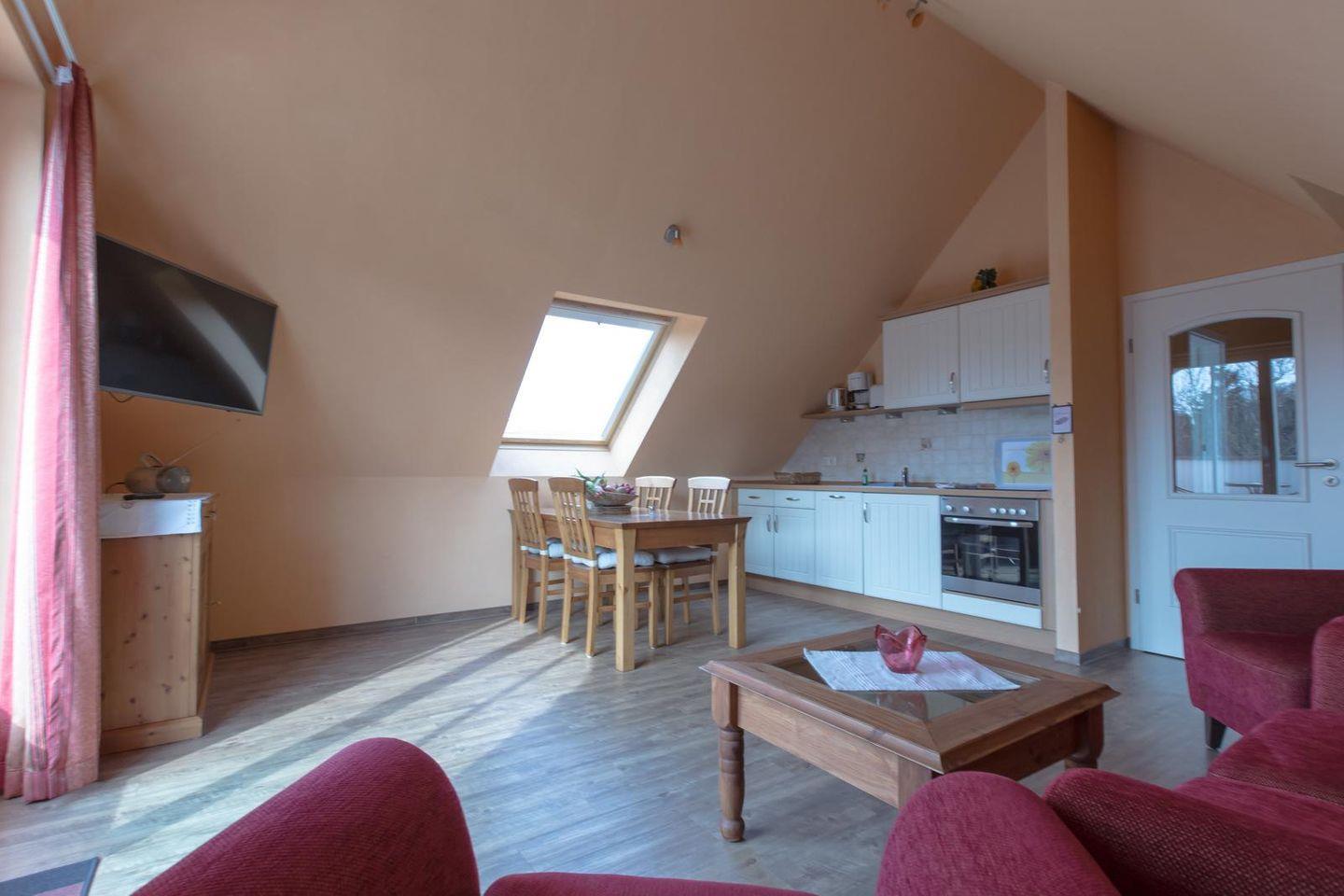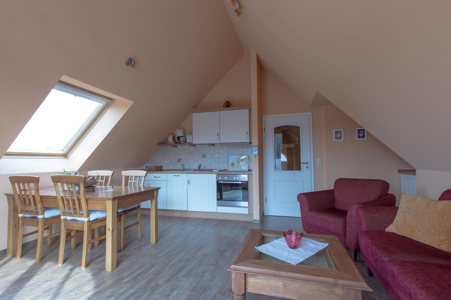 Unser "Penthouse": Diese ca. 70 qm große 3 Raum-Ferienwohnung befindet sich im Dachgeschoss bzw. 4. Etage - Personenaufzug endet in der 3. Etage - der Villa Senta. Wohnung nur zu Fuß erreichbar.
