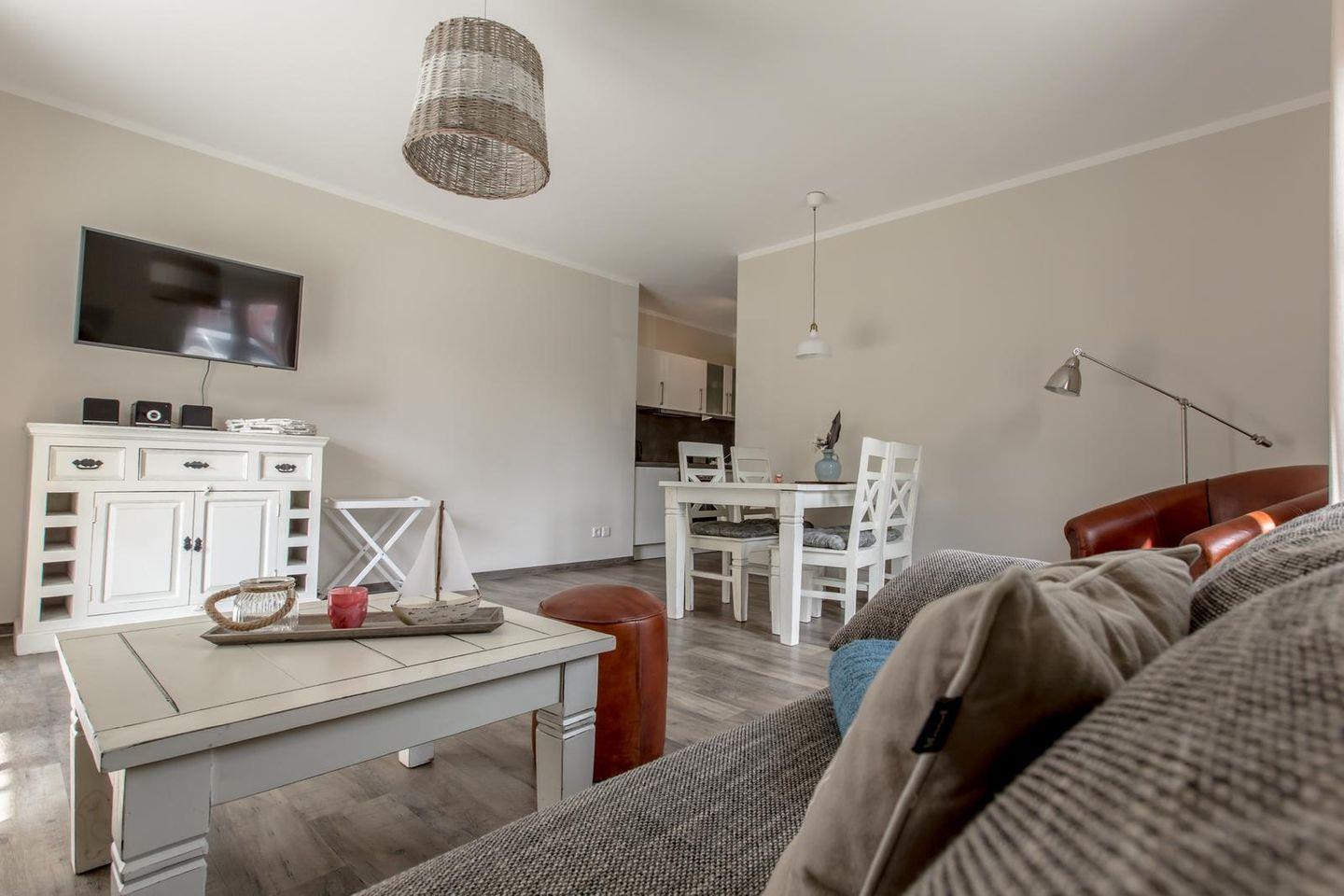 Die 18 Appartements sind ganzjährig buchbar. Das gesamte Ferienobjekt wird komplett über eine Erdwärme-Fußbodenheizung beheizt. Auf Teppichböden wurde generell verzichtet. 18 Stellplätze sowie Abstellmöglichkeiten für, z.B. Fahrräder befinden sich geschützt vor Wind und Wetter in der Tiefgarage des 2014 gebauten Appartementhauses.