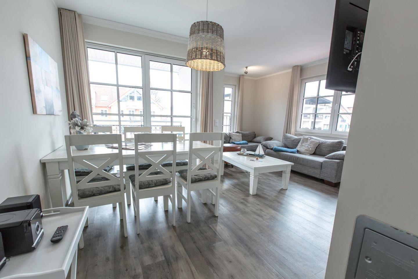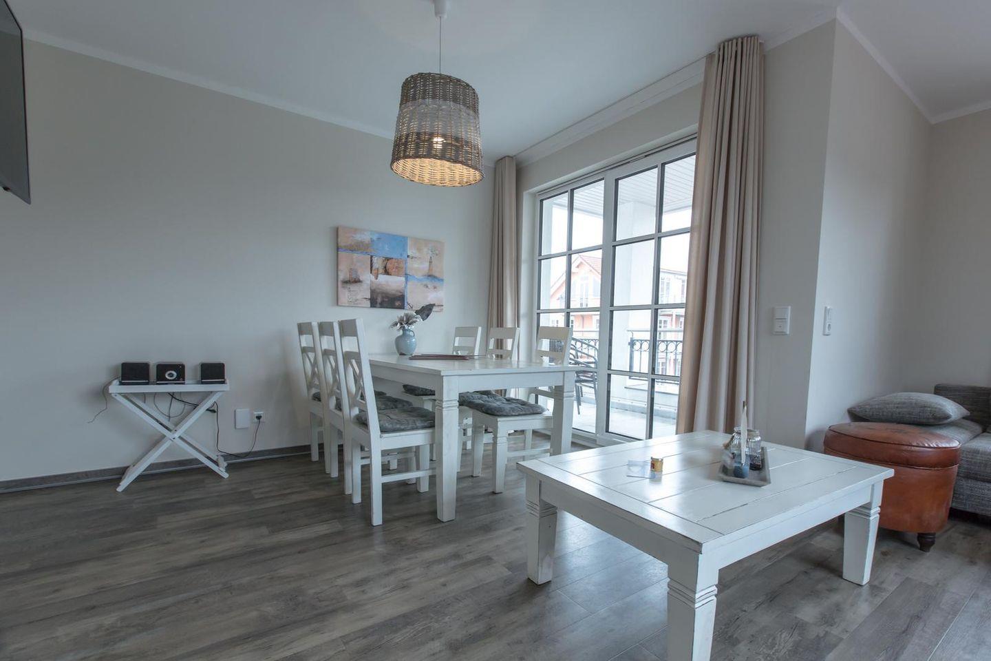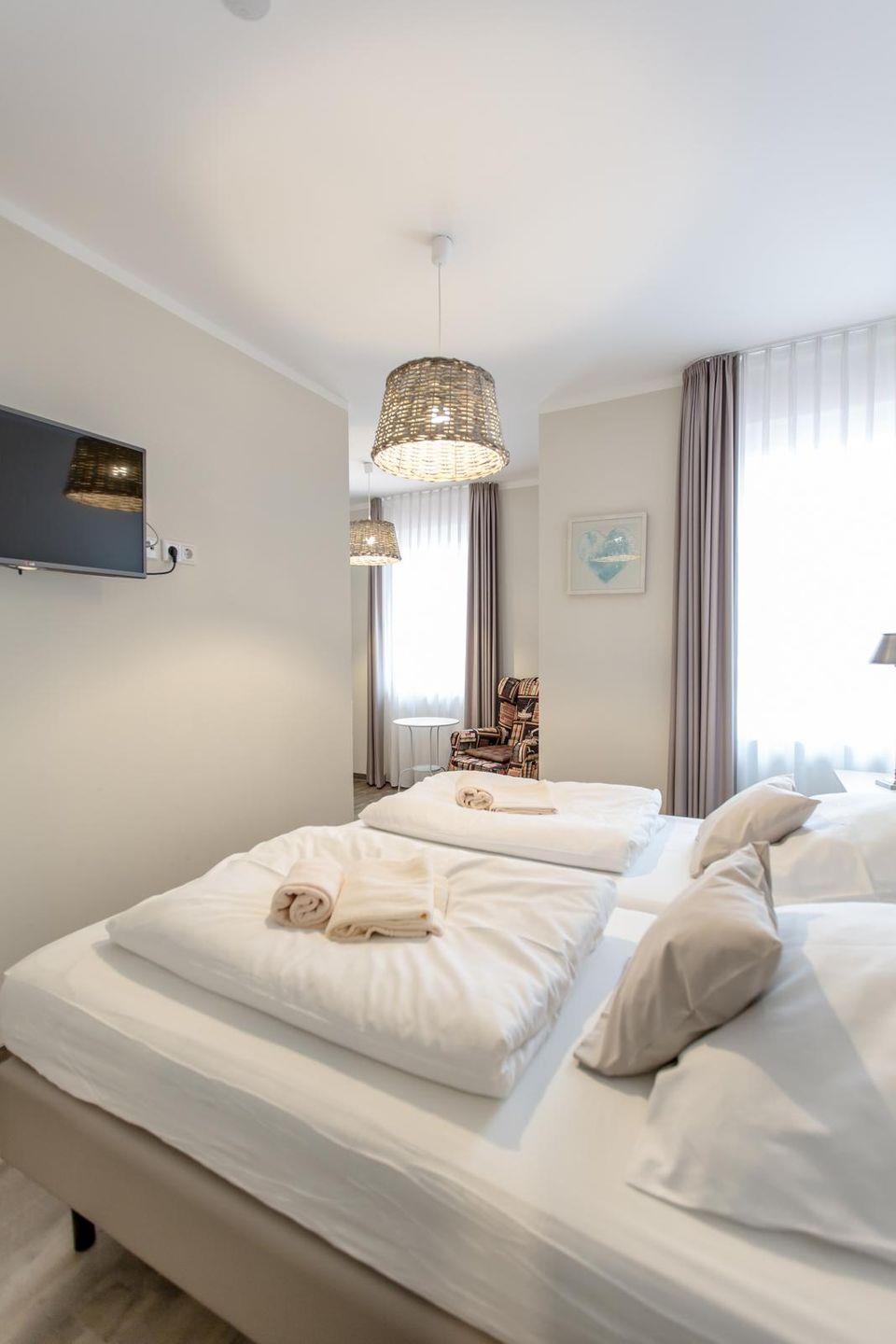 Die ca. 70 qm große 3-Zimmer-Ferienwohnung befindet sich im Dachgeschoss der Villa Borwin.