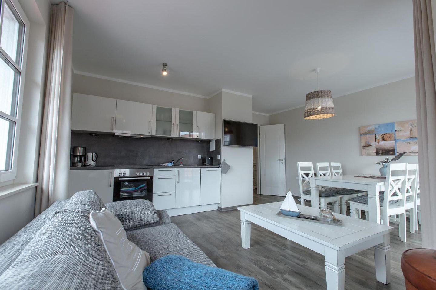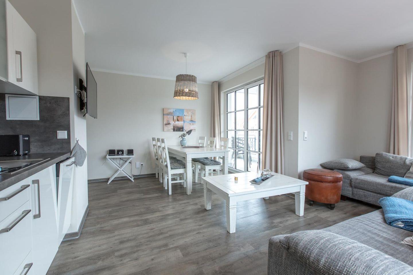 Die 18 Appartements sind ganzjährig buchbar. Das gesamte Ferienobjekt wird komplett über eine Erdwärme-Fußbodenheizung beheizt. Auf Teppichböden wurde generell verzichtet. 18 Stellplätze sowie Abstellmöglichkeiten für, z.B. Fahrräder befinden sich geschützt vor Wind und Wetter in der Tiefgarage des 2014 gebauten Appartementhauses.